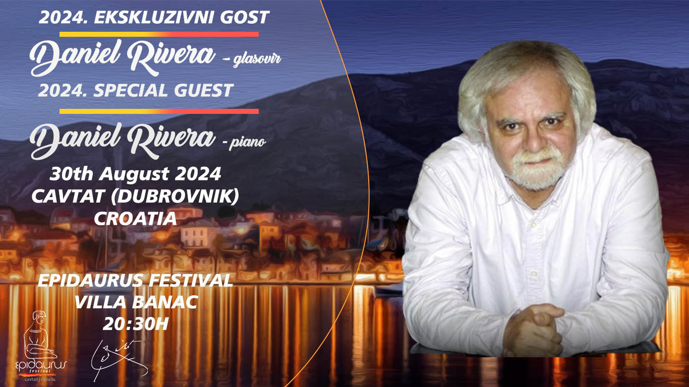 U 2024. godini održat će turneju od 14 koncerata diljem Europe – jedan od njih upravo je ovaj cavtatski, na što je, ističe Ivana Maria Vidović, umjetnička direktorica Festivala – izuzetno ponosna.Daniel Rivera, priznati argentinski pijanist, započeo je međunarodnu karijeru nakon osvajanja prestižnih natjecanja poput Ferruccio Busoni, Dino Ciani i Reine Elisabeth. Poznata je i njegova iznimna suradnja sa svjetski poznatom pijanisticom Martom Argerich, koja je započela 2009. godine nakon što ga je osobno pozvala na Progetto Martha Argerich u Luganu. Nastupali su zajedno na brojnim koncertima diljem svijeta, uključujući legendarne nastupe u Teatro El Círculo u Rosariju i Teatro Petrarca u Arezzu.Ovaj koncert na 18. Epidaurus festivalu u Cavtatu je debút maestra Rivere u Hrvatskoj.