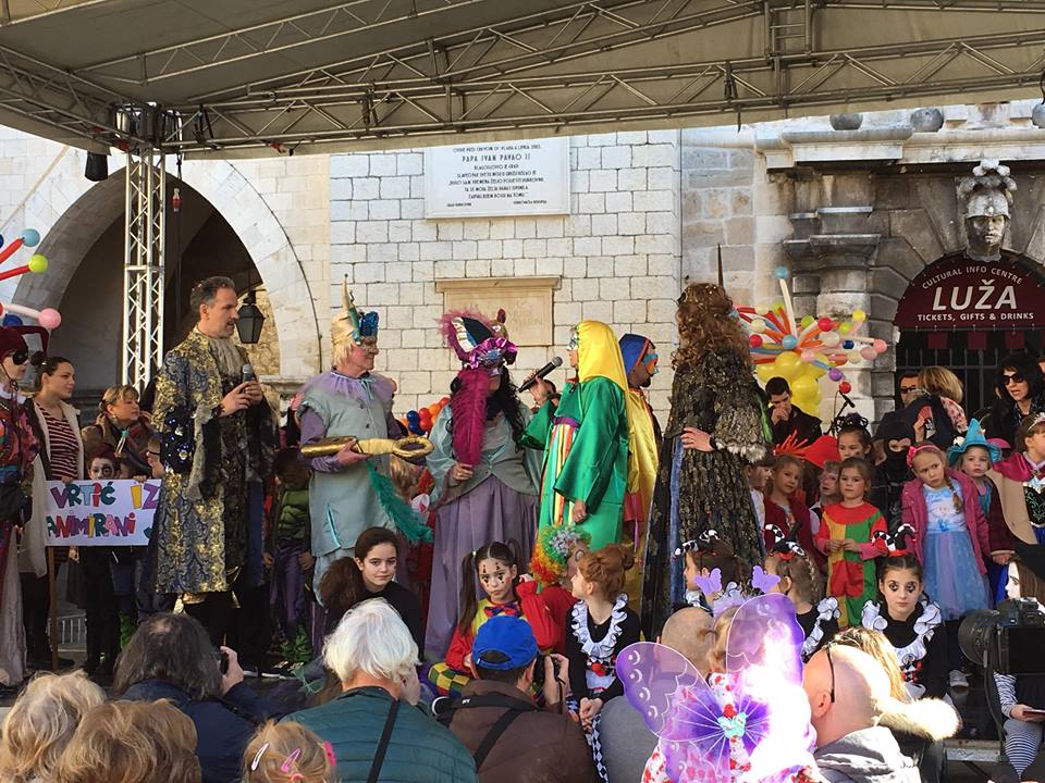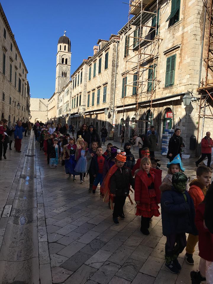 Nakon otvaranja izložbe, u 10 sati, povorka malih maškara iz dječjih vrtića Pile i Izviđač krenula je s Pila preko Straduna, gdje su zaplesali na pozornici ispred sv.Vlaha uz vesele maškarane plesačice Plesnog studia Lazareti, glazbenu pratnju Karnevalskog benda te voditelje Zrinku Japunčić i Sebastiana Vukosavića.