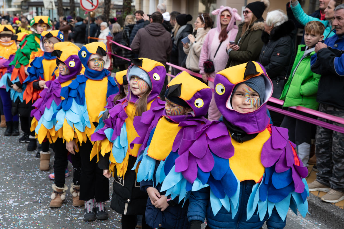 U 12 sati povorku će otvoriti Dječje gradsko vijeće Grada Opatije, na čelu s dječjim gradonačelnikom Mihaelom Šorićem, predstavljajući masku „Djeca – zagovaratelji dječjih prava“. Tradicionalnu rutu od gradske tržnice do Slatine pratit će Puhački orkestar Lovran i male mažoretkinje Opatijske rivijere, Nedelišća i Pule.