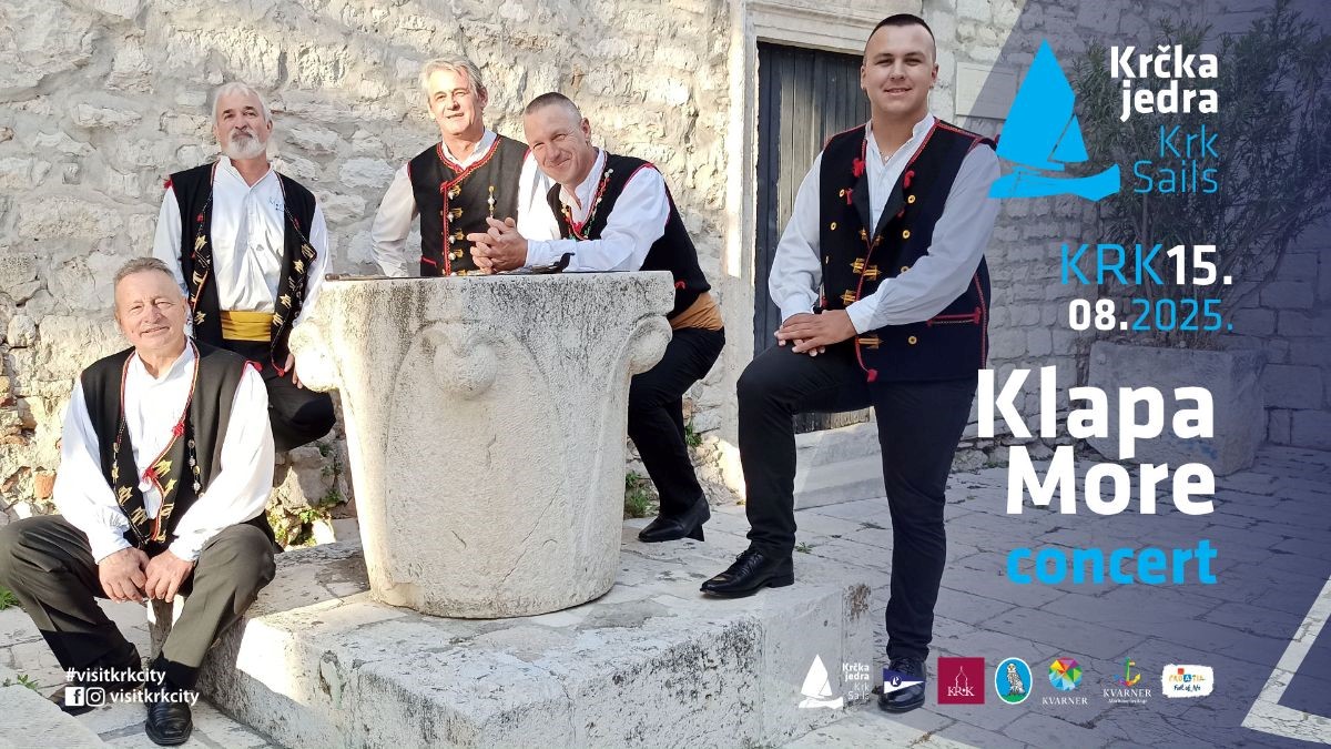 Osnovana 1995. godine u Splitu, Klapa More prepoznatljiva je po svojoj vjernosti izvornoj dalmatinskoj pjesmi, ali i po modernijim obradama koje približavaju klapski izričaj široj publici. Nastupali su diljem Hrvatske i inozemstva, a publiku osvajaju toplinom, vokalnom preciznošću i snažnim osjećajem pripadnosti moru i zavičaju. Njihova izvedba pod vedrim nebom i u atmosferi ljetne krčke večeri savršen je zaključak manifestacije.