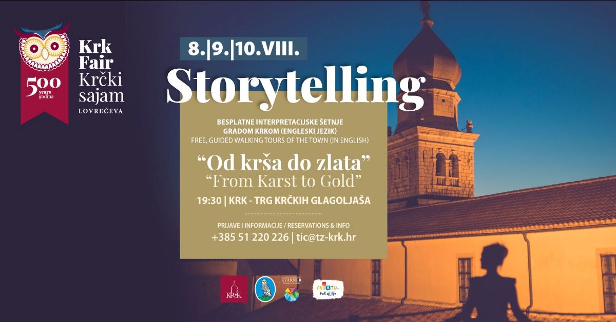 Ove godine, povodom jubilarnog 500. Krčkog sajma, Turistička zajednica Grada Krka posjetiteljima nudi jedinstvenu priliku da dožive naš grad kroz priče i legende. Tri besplatne storytelling šetnje, održat će se 8., 9. i 10. kolovoza na engleskom jeziku!