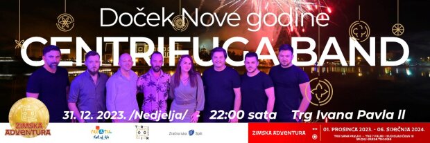 29.12.2023. Doček Nove godine u Trogiru KUZMA & SHAKA ZULU (jutarnji doček Nove godine) i GRUPA CENTRIFUGA (doček Nove godine)