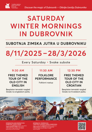 03.11.2025. Subotnja zimska jutra u Dubrovniku Folklorni nastupi i tematski razgledi Grada tijekom zimskih mjeseci