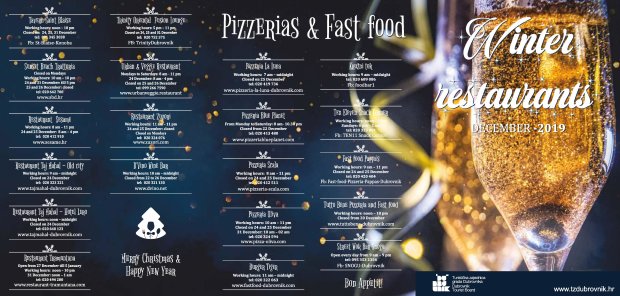 02.12.2019. TZG Dubrovnika provodi promotivne aktivnosti za otvorene restorane tijekom zime Tiskan letak s popisom otvorenih restorana tijekom prosinca