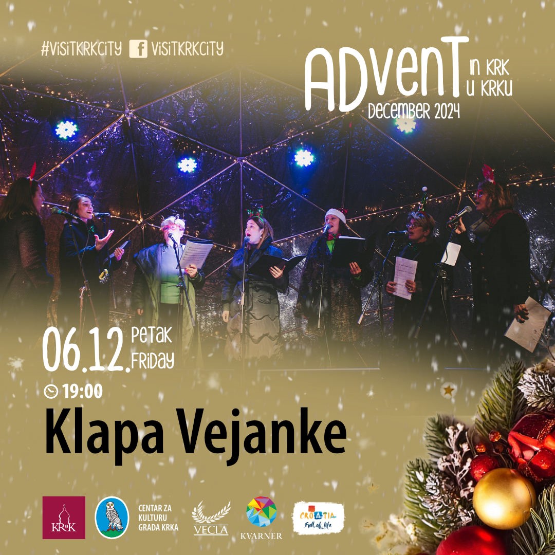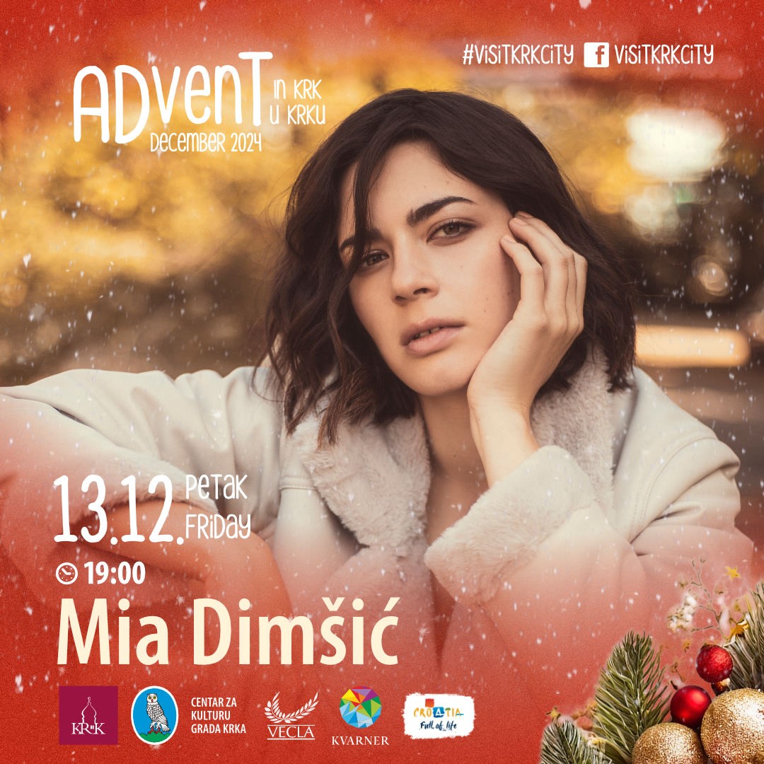 Posebnu blagdansku čaroliju dodat će i Klapa Vejanke, jedina ženska klapa s otoka Krka, koja će izvesti svoje autentične klapske pjesme i obrade popularnih skladbi, te krčka kantautorica Stefany poznata po nježnom vokalu i snažnim emocijama koje prenosi u pjesmama. Uživat ćemo i u glazbenom nastupu "Kanat za moj grad" Anite Gunjević, koji je posvećen gradu Krku, nakon čega slijedi Damir Kedžo, jedan od najpoznatijih glazbenih talenata s otoka, čije su pjesme "Sve u meni se budi" i "Hram" postale pravi hitovi. Kedžo, prepoznatljiv po emotivnim izvedbama i vokalnoj snazi, redovito oduševljava publiku svojim jedinstvenim pristupom baladama. U adventsko raspoloženje unijet će nas i Mia Dimšić, čije pjesme odišu toplinom i privlače publiku svih generacija. Mia iza sebe ima pet objavljenih studijskih albuma, a nakon što je 2022. godine pobijedila na Dori s pjesmom "Guilty pleasure" i predstavljala Hrvatsku na Eurosongu, dodatno je učvrstila svoju poziciju na domaćoj glazbenoj sceni.