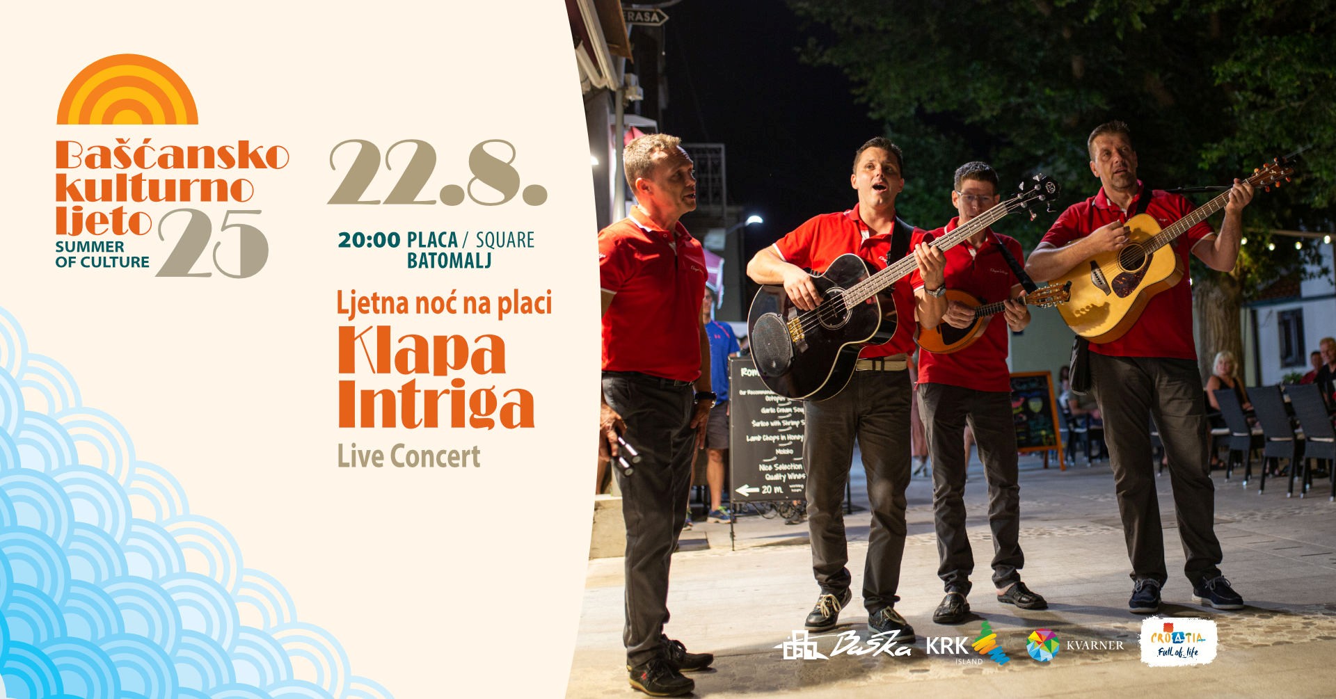 Ljetna noć na placi: Klapa Intriga – glazbena večer u Batomlju