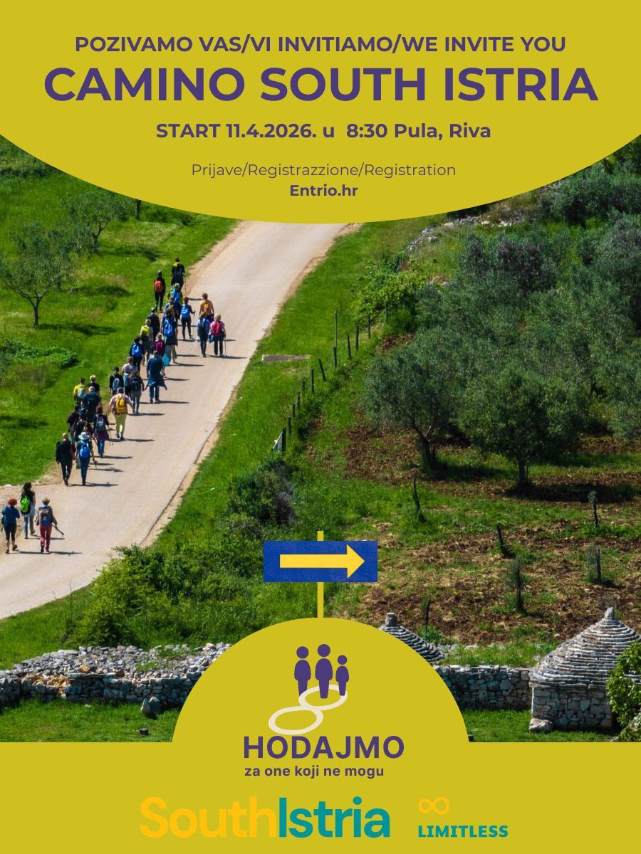 Na tiskovnoj konferenciji održanoj 20. veljače u 12:00 sati u prostorijama Turističke zajednice Grada Pule najavljena je manifestacija Camino South Istria koja se održava treću godinu zaredom 11.4.2026. godine, a ove godine ima i snažnu humanitarnu dimenziju – prikupljanje sredstava za sufinanciranje nabave prilagođenog vozila za potrebe Društva osoba s tjelesnim invaliditetom južne Istre.