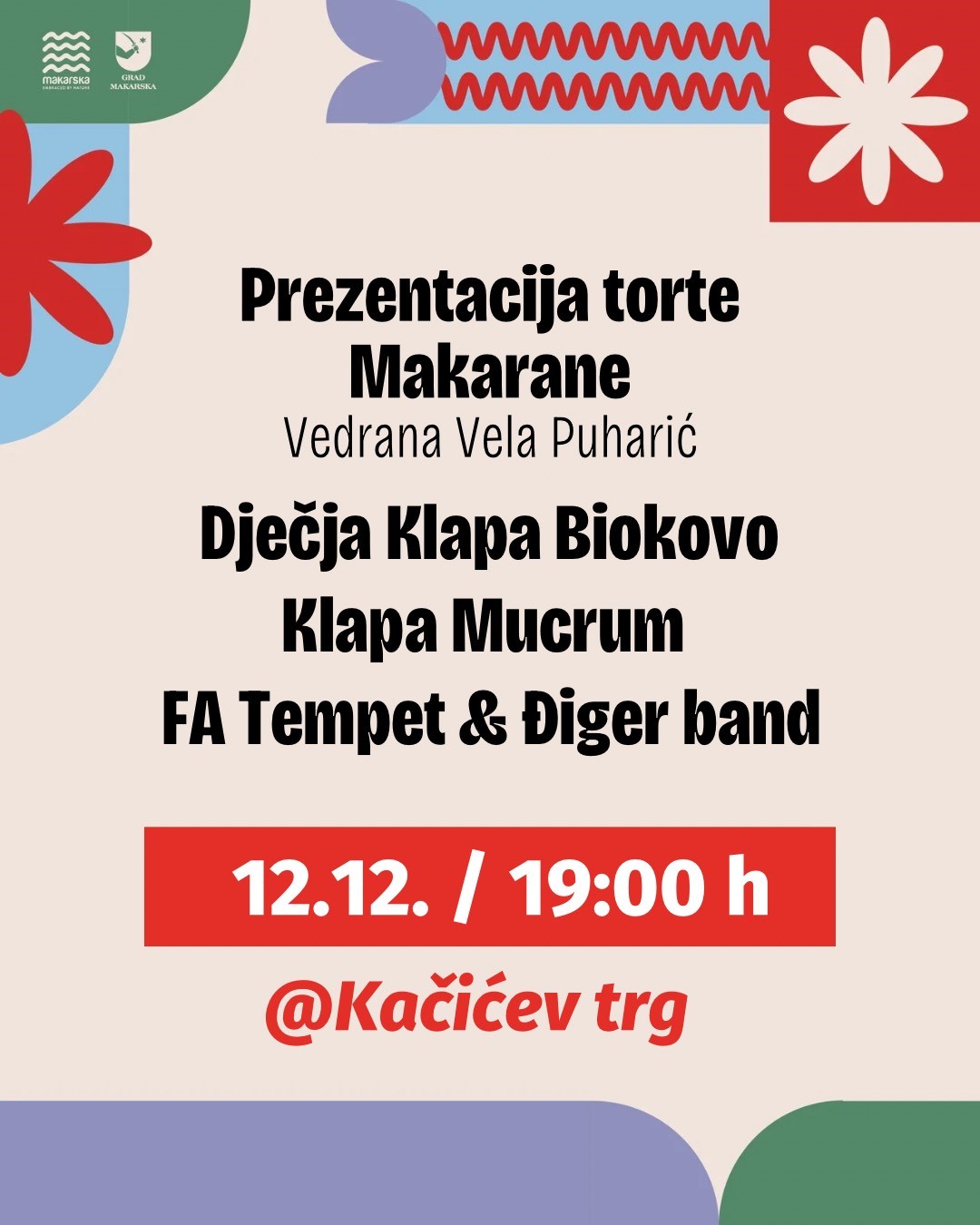 Večer donosi nastup dječje klape Biokovo, nakon čega slijedi prezentacija Torte Makarane uz Vedranu Velu Puharić. Kroz ovu posebnu prezentaciju, posjetitelji će imati priliku saznati zanimljive detalje o povijesti i recepturi torte, kao i uživati u kušanju ove prepoznatljive delicije.