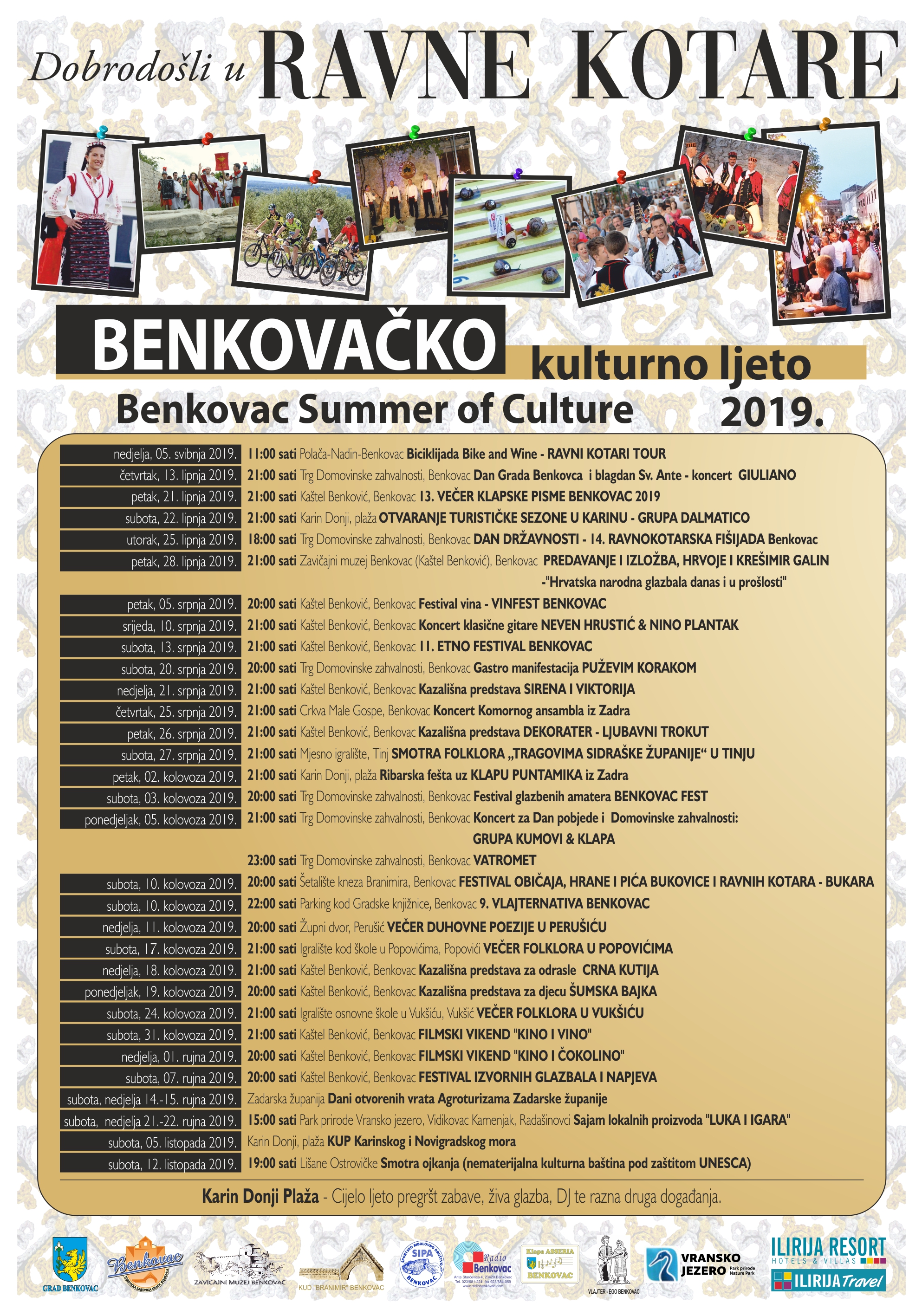 Benkovačko kulturno ljeto počinje početkom svibnja i traje do sredine listopada, pod sloganom: Dobrodošli u Ravne kotare!