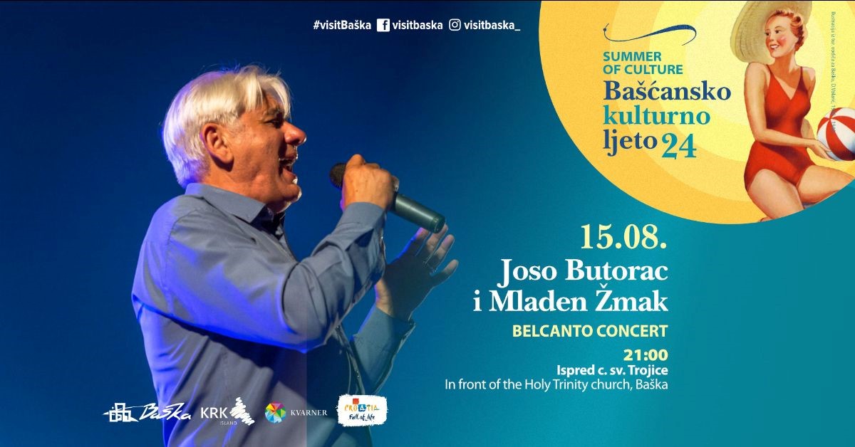 Povodom obilježavanja blagdana Vele Gospe, ispred župne crkve sv. Trojice održat će se belcanto koncert Jose Butorca, šesterostrukog pobjednika Festivala Melodije Istre i Kvarnera i vrhunskog belcanto pjevača. Uz klavirsku pratnju maestra Mladena Žmaka, Butorac će izvesti pobjedničke pjesme MIK-a, svjetski poznate arije te brojne domaće i strane evergreene.