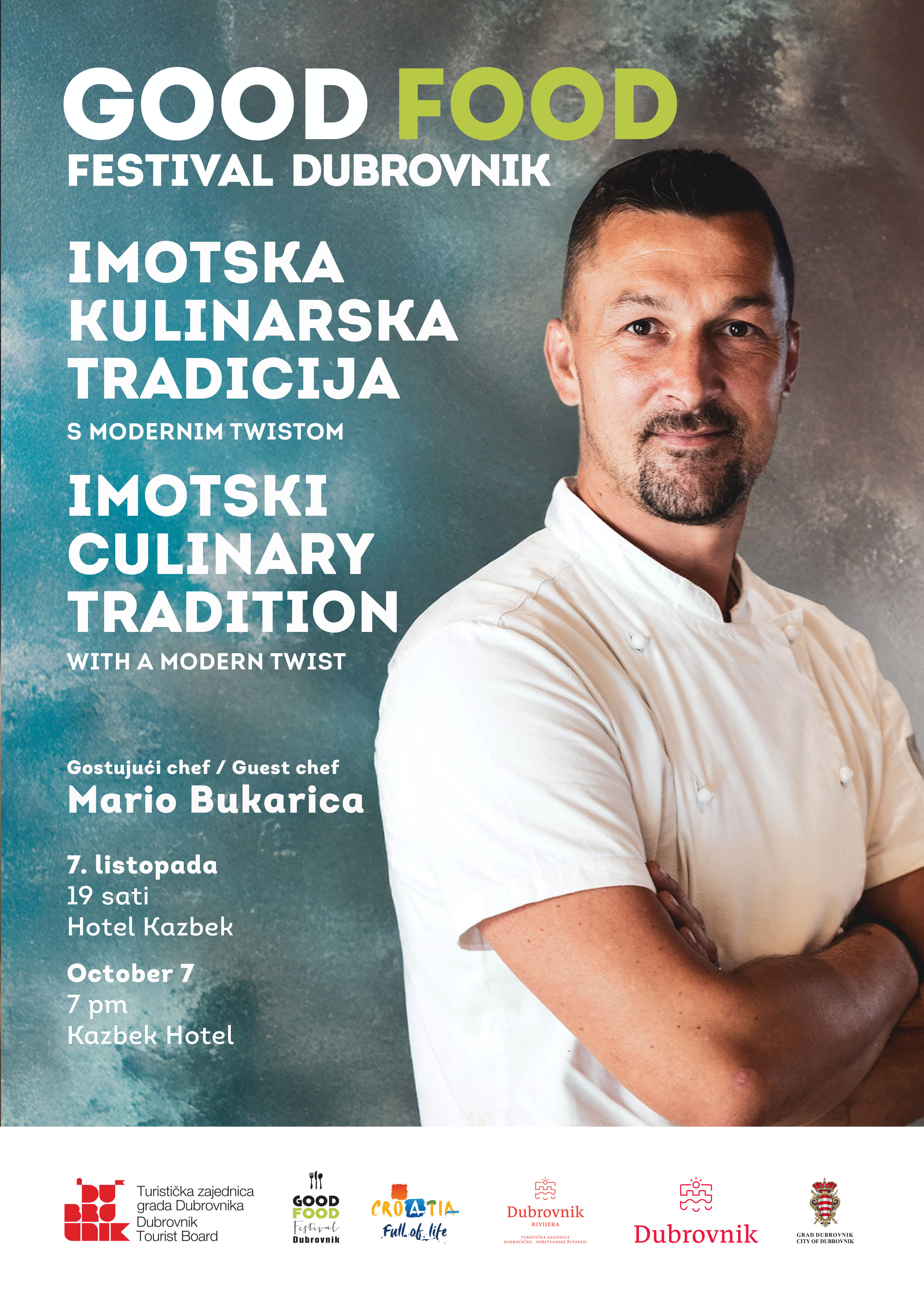 Počinje Good Food Festival, koji i ove godine donosi raznoliku gastronomsku ponudu uz vrhunska vina i ukusna jela. Tijekom prvog tjedna festivala, od 6. do 12. listopada, održat će se brojni događaji, uključujući tjedan dubrovačkih restorana, vinokušnje, radionice, tematske večere te večere s poznatim chefovima Ivanom Pažaninom, Davidom Skokom, Markom Đuraševićem, "Foodravanje", kao i mnoga druga nezaobilazna događanja. Više od 60 restorana sudjeluje na festivalu, a vrijedni chefovi posebno su kreirali festivalske menije po promotivnim cijenama.