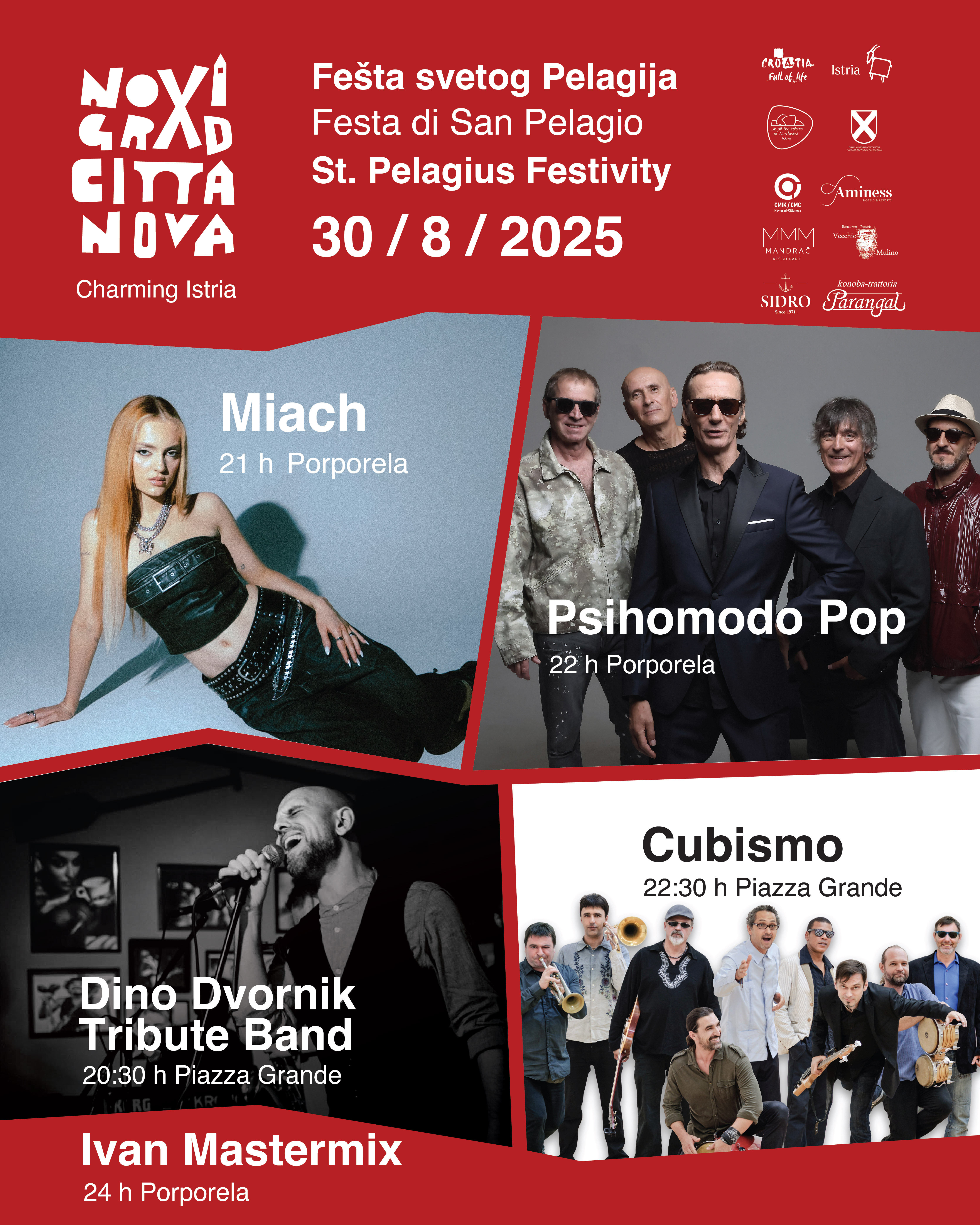 Program na Poropreli počet će u 21 sat s nastupom Miach, miljenice mlađih generacija. Nakon nje, legende hrvatskog rocka dolaze raspaliti Porporelu. Kultni Psihomodo Pop kreće u 22 sata i donosi čisti, sirovi rokenrol bez kompromisa, a od ponoći slijedi nešto jednako energično, ali više elektronično - DJ Ivan Mastermix za sve ljubitelje klupske glazbe i party scene.