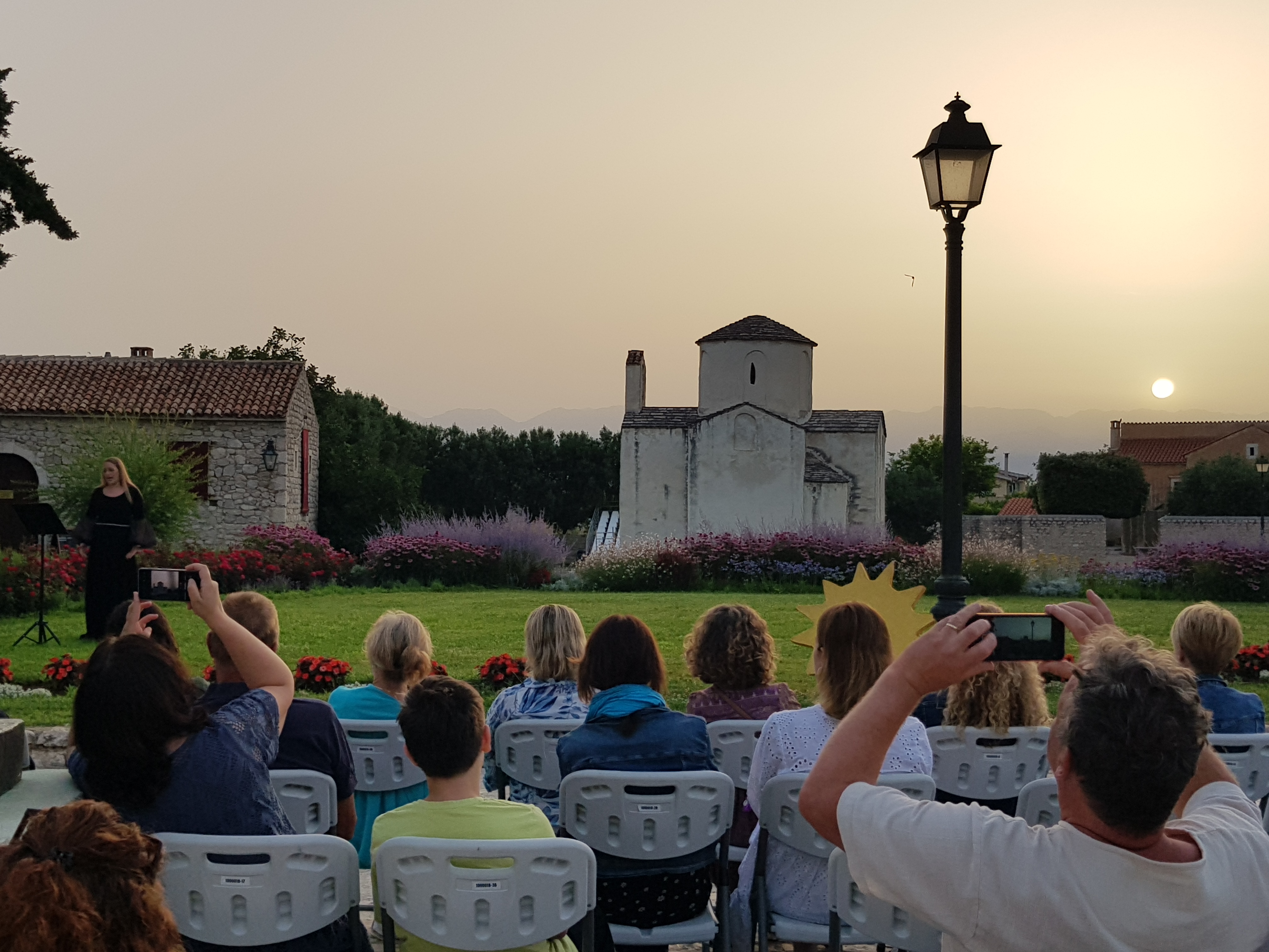 Bogati festivalski program nastavio se i u večernjim satima, uključujući i kostimirano vođenje na hrvatskom i engleskom jeziku pod nazivom "Pjesnik Petar Zoranić Ninjanin vodi vas kroz povijest kraljevskog grada".