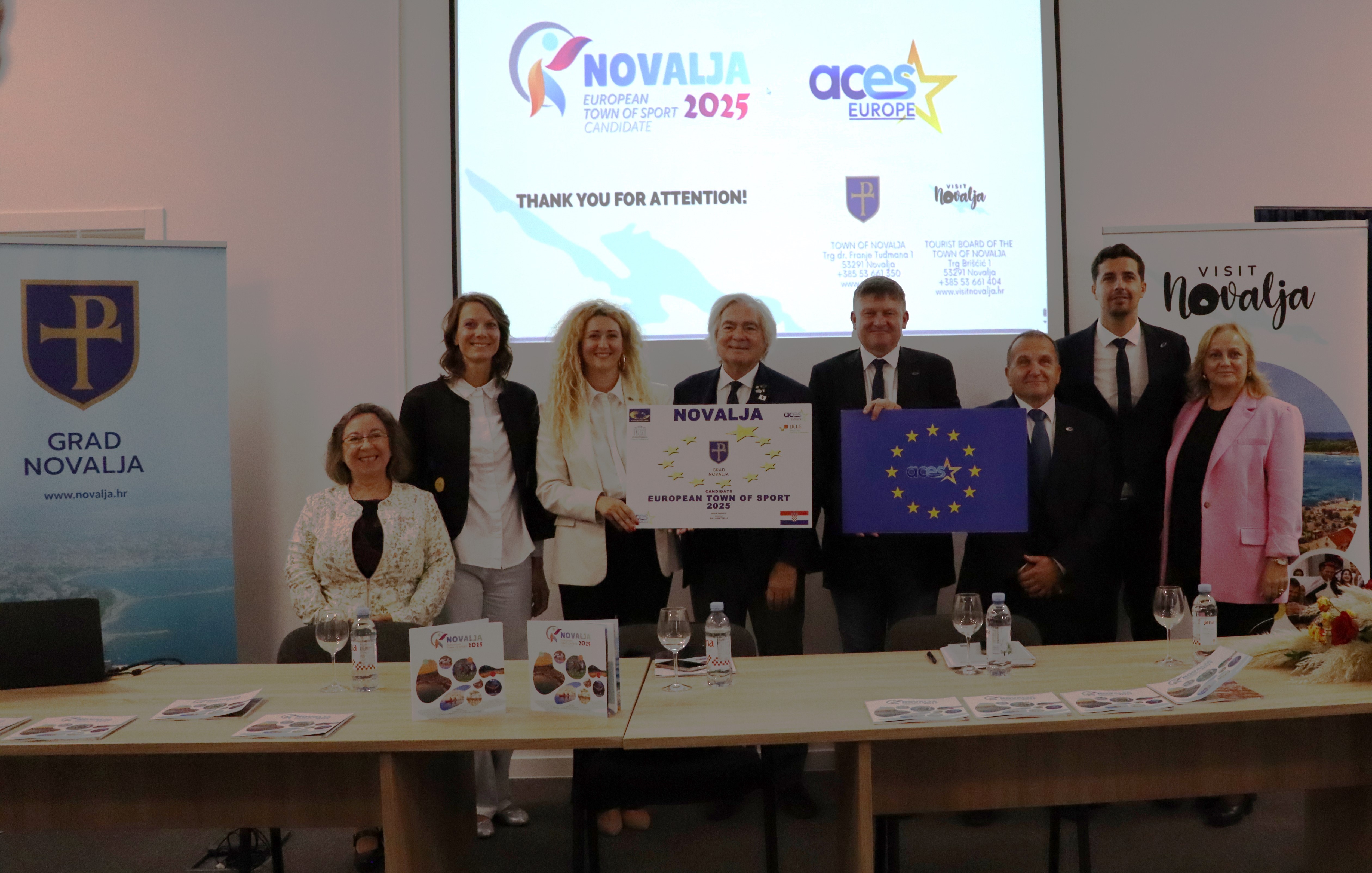 Članovi komisije ACES Europe (Europski gradovi i regije sporta) na čelu s G. F. Lupattellijem, osnivačem i predsjednikom ACES Europe protekla su dva dana obilazili sportsku infrastrukturu i raznolikost sportskih programa u gradu. Nakon obilaska sportske infrastrukture i upoznavanja sa sportskom lokalnom zajednicom komisiji je prezentiran BID-file, dokument koji obuhvaća sve relevantne podatke povezane sa sportom na području Grada Novalje. Taj opsežni dokument uključuje poglavlja koja obrađuju povijest sporta, proračunska izdvajanja za sport, pregled sportske infrastrukture, aktivnosti lokalnih sportskih klubova i sportske sadržaje namijenjene svim uzrastima – od predškolaca do žena te starijih osoba, uključujući i osobe s posebnim potrebama te invaliditetom. Članovi komisije bili su zadovoljni sportskom infrastrukturom koju su obišli te sportskim programima koji su im predstavljeni. Njihova ocjena bila je pozitivna, a istaknuta je i kvaliteta objekata i raznovrsnost ponuđenih sportskih programa.