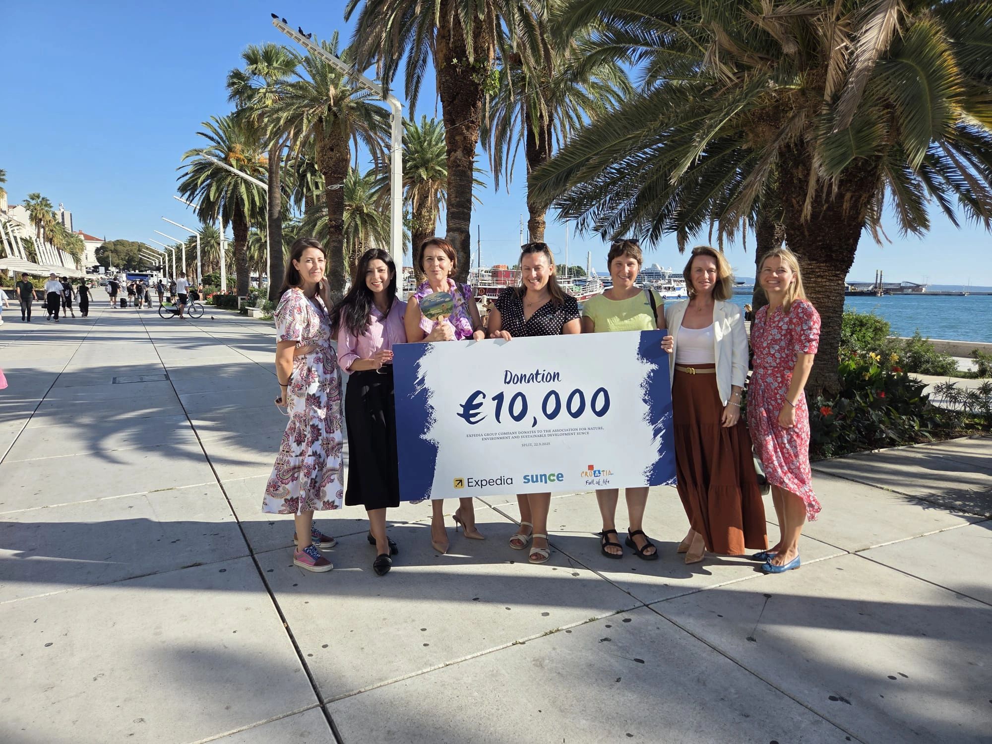 Hrvatska turistička zajednica (HTZ), Turistička zajednica Splitsko - dalmatinske županije i vodeća američka platforma za rezervaciju putovanja Expedia Group jučer su na splitskoj Rivi dodijelile donaciju u iznosu od 10.000 EUR Udruzi za prirodu, zaštitu okoliša i održivi razvoj Sunce.