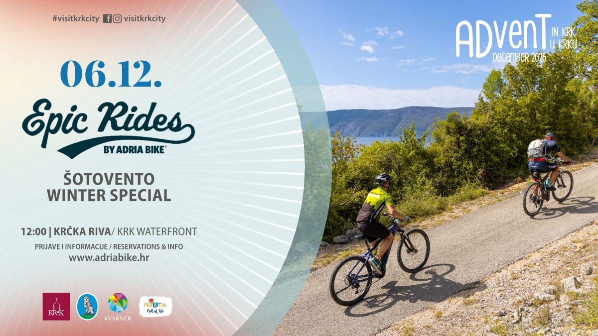 Projekt EPIC RIDES Hrvatska, koji od 2021. godine otkriva najljepše dijelove zemlje i približava ih svim zaljubljenicima u rekreativni biciklizam, u svojoj petoj sezoni ponovo stiže u grad Krk i u Šotovento – ovoga puta s prvim zimskim izdanjem. Start je predviđen u samom srcu starog grada Krka, pokraj Sunčanog sata. Nova zimska ruta vodi mirnim putevima i šumovitim predjelima Šotoventa, uz prepoznatljive suhozide i pogled na more.