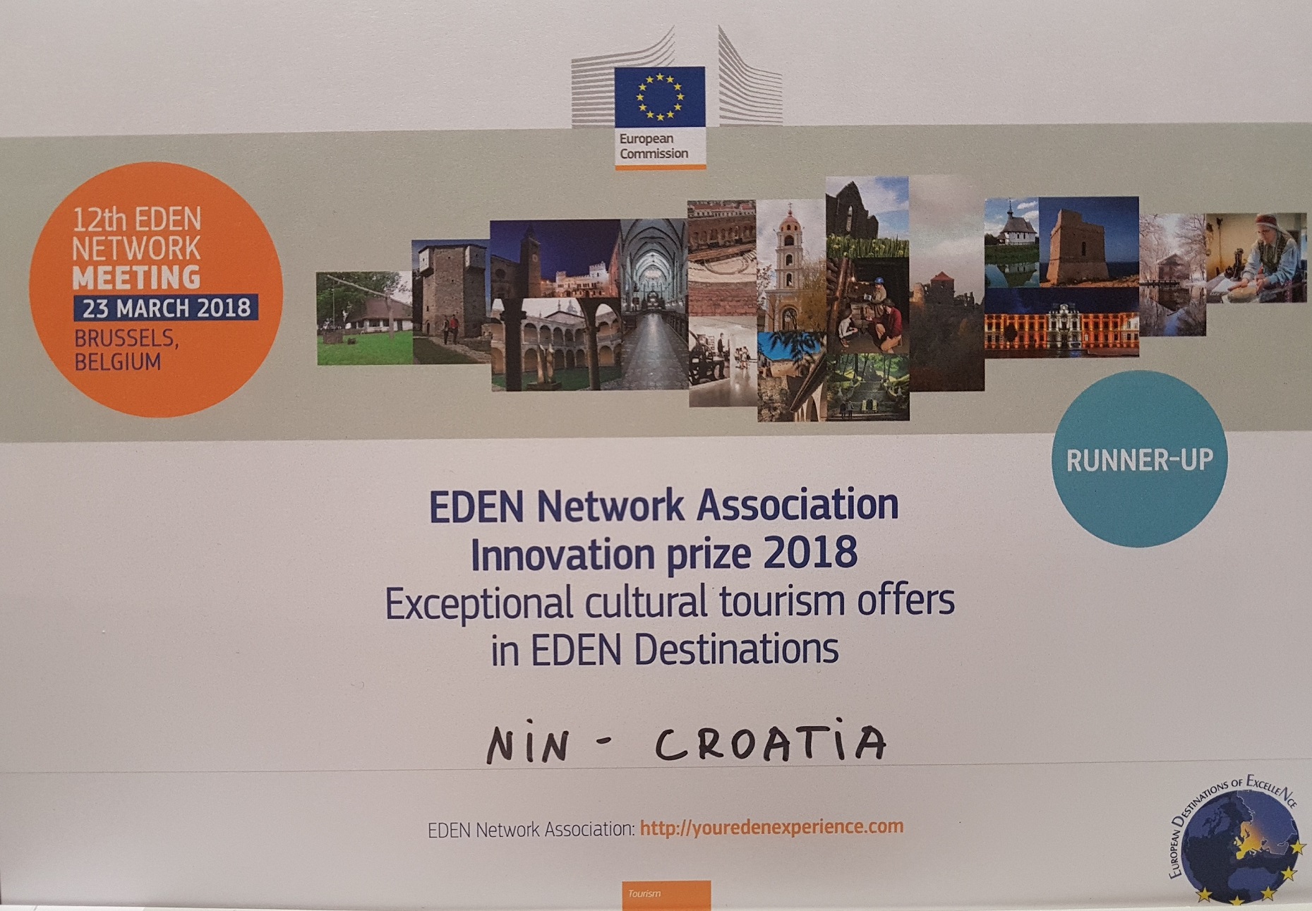 Predsjedništvo EDEN udruge prepoznalo je kulturno-turističku ponudu grada Nina. Inovativna nagrada u okviru teme kulturnog turizma je potvrda da ninski EDEN tim odlično surađuje i slijedi smjernice EDEN projekta Europske komisije koji uključuje načela održivog razvoja turizma. Potrebno je istaknuti da je Nin do sada već bio nagrađen ispred Eden predsjedništva i to 2013. kada je primio Nagradu za najinovativnije korištenje Eden loga.
