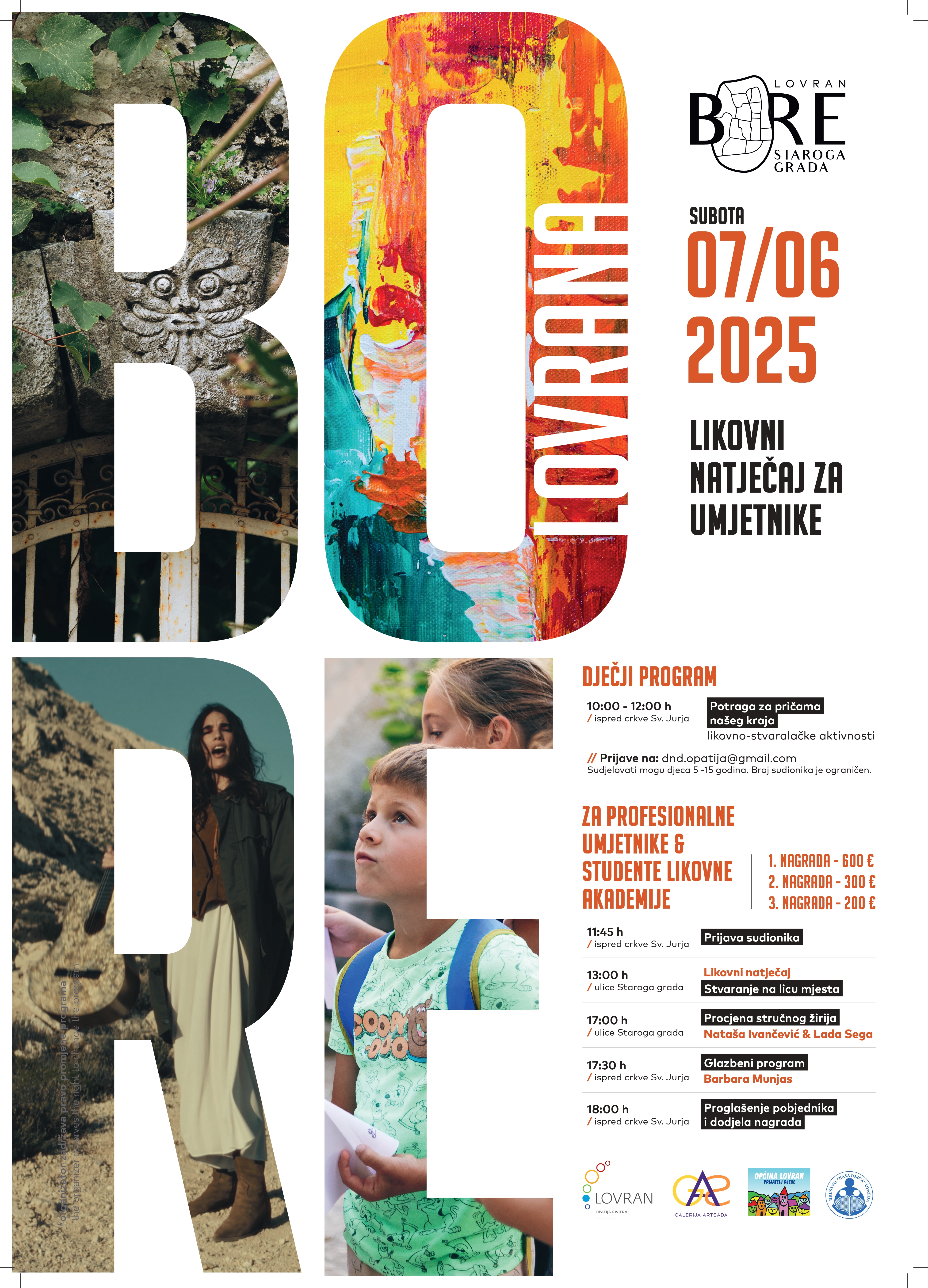 Poslijepodnevni sati okupiti će ponajbolje umjetnike s našeg područja a i šire koji će se osim u izlaganju svojih radova okušati i u likovnom natječaju za vrlo vrijedne nagrade. Kako bi organizacija protekla u najboljem redu pobrinuti će se lovranska mlada umjetnica Petra Dusper koja će ujedno biti i moderator cijelog događaja. I u ovom djelu je broj sudionika ograničen pa je potrebno prijaviti se na: borestarogagrada@gmail.com.