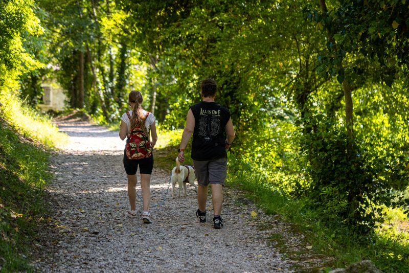 Za zajednički aktivni boravak u prirodi s ljubimcem nema boljeg od šetnje kroz netaknutu prirodu. NP „Krka“ nudi čak dvadeset dvije poučno-pješačke staze, duge ukupno 47 km. Hodajući njima, posjetitelji mogu doživjeti raskoš sedrenih slapova, raznovrsnost flore i faune te povijesne i kulturne spomenike, koji se nenametljivo uklapaju u krajolik. Informativne table uz staze obogaćuju šetnju usvajanjem novih spoznaja, dok mirisi i zvukovi prirode i pogled na Krku i njezine pritoke čine iskustvo boravka u Parku nezaboravnim.