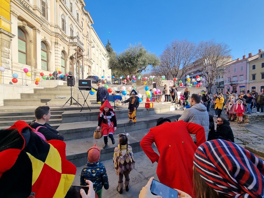 Lijepo vrijeme izmamilo je mnoge male maškare da dođu do grada i poprate djeci zanimljive programe Veselog karnevalskog autobusa u organizaciji udruge Birikina Pula, mađioničara Stefana i Rozi make-up oslikavanje lica na Portarati te u Parku grada Graza interaktivne predstave „Šumska pustolovina“ u organizaciji Teatra Naranča.