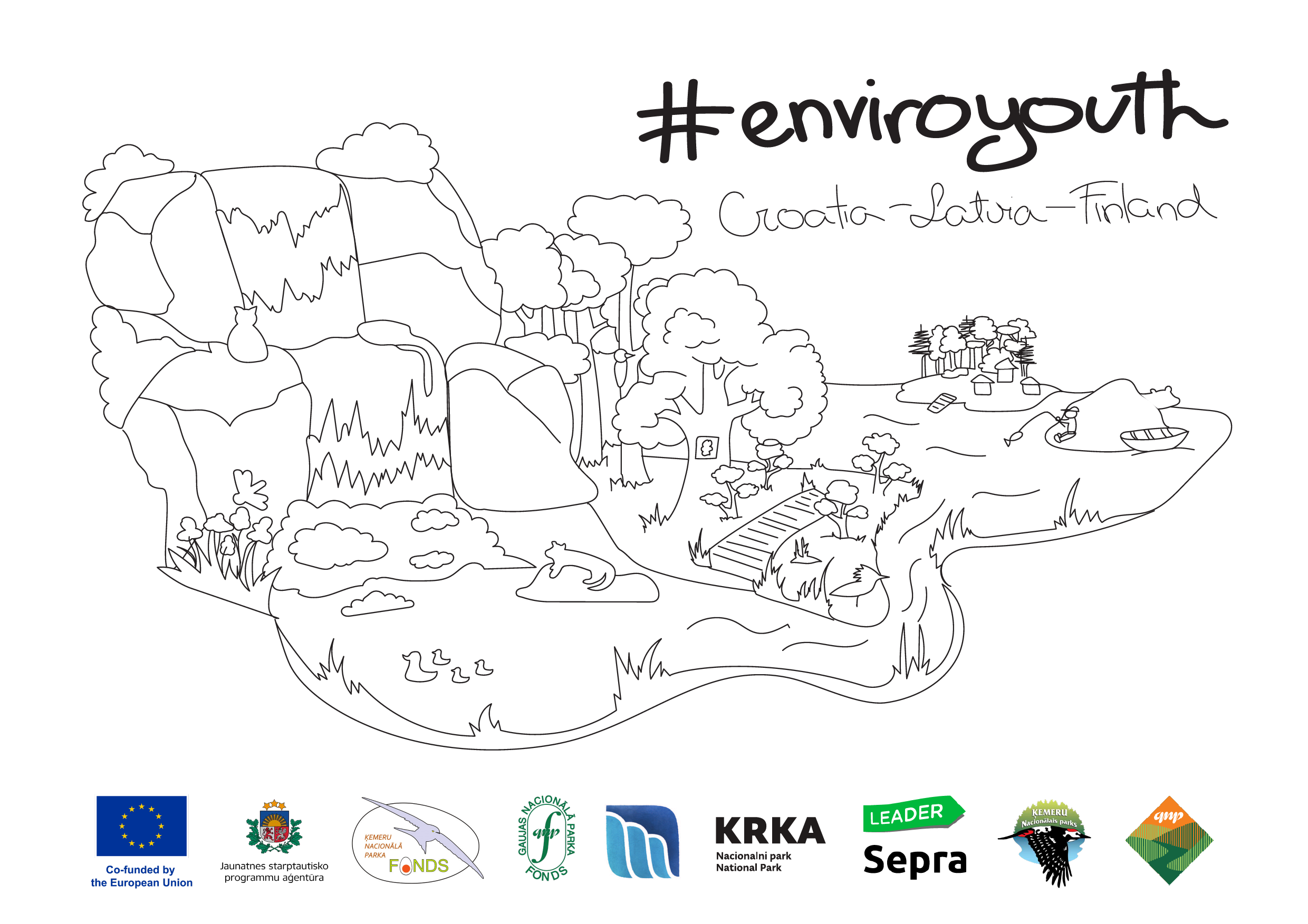 Izvorna priroda, očuvana bioraznolikost, bogatstvo ekosustava i tisućljetna povijesna i kulturna baština rezultirali su osmišljavanjem vizualnog rješenja koje će predstavljati taj Erasmus+ projekt. Vizual je kompozicijski podijeljen u tri cjeline. Na lijevoj strani mogu se prepoznati raskošni Krkini slapovi, vretence koje se divi grmu perunike i patke koje se odmaraju na bistroj vodi. Sredina crteža posvećena je latvijskim šumskim i močvarnim ekosustavima čija zaštita zahtijeva posebnu pažnju. Na desnoj strani crteža ističu se nordijska četinasta šuma s drvenim kolibama, finska jezera i smeđi medvjed koji budno pazi na ulov ribiča.