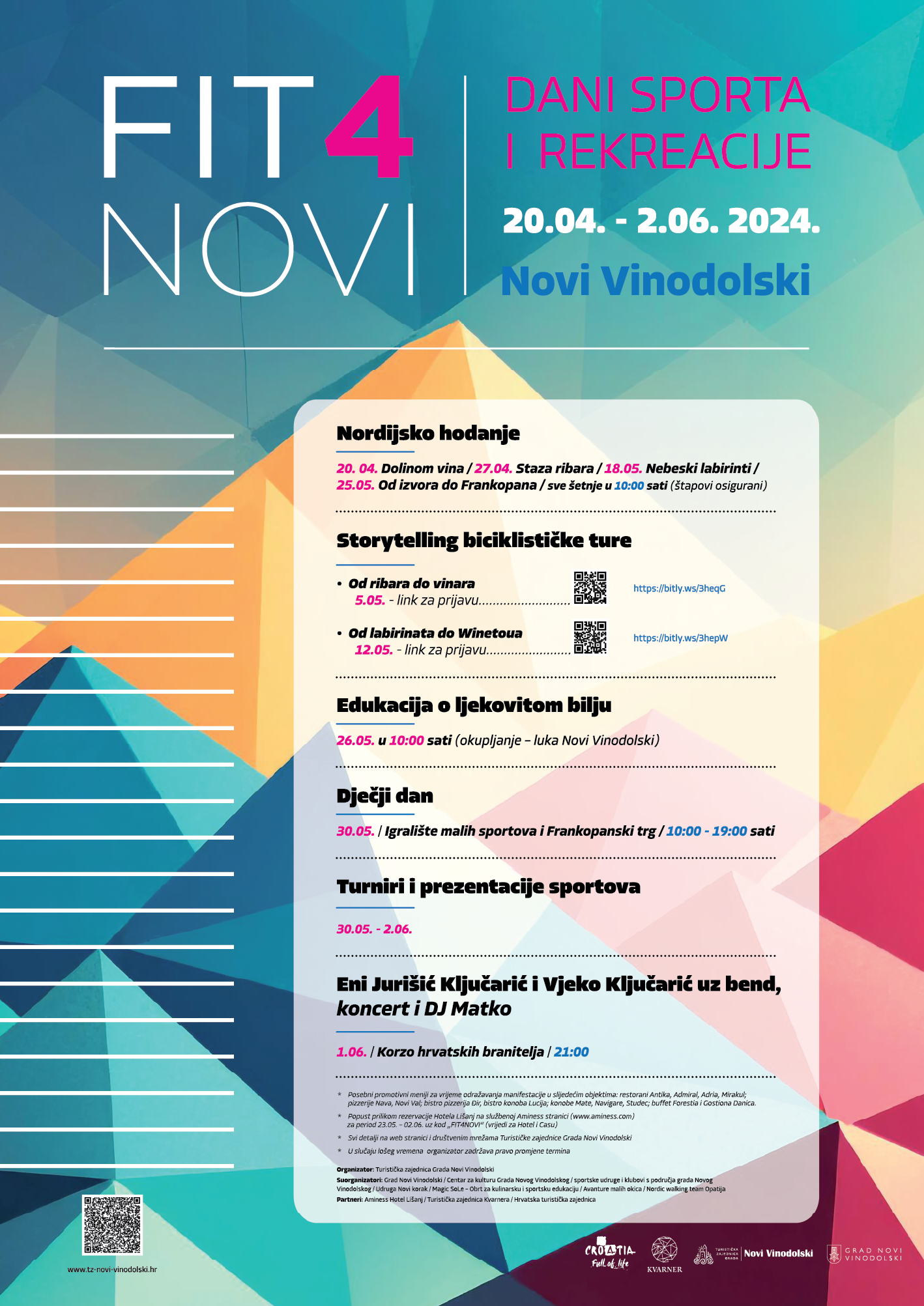 Organizator zadržava pravo promjene termina ili otkazivanja u slučaju lošeg vremena. Za sve informacije pratite nas na službenoj internetskoj stranici https://www.tz-novi-vinodolski.hr/ i društvenim mrežama (Facebook i Instagram – TZ Grada Novi Vinodolski).