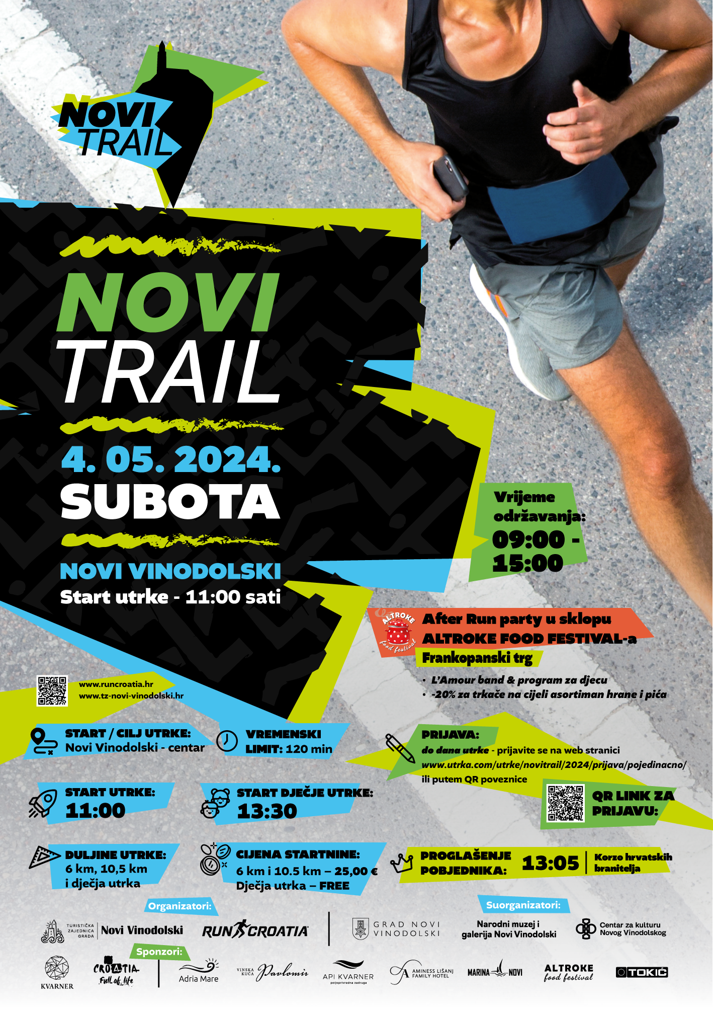 Ove će se godine po prvi puta održati i Novi trail 2024. utrke na 6 km i na 10,5 km te dječje utrke na 100 m i 200 m koje će prolaziti novljanskim Korzom. Prijavljeno je nešto više od 100 trkača te nešto više od 50 djece koja će subotnje jutro provesti aktivno te se nakon samih utrka, a nakon proglašenja najboljih dobro zabaviti. Također, u večernjem terminu će se u sklopu Altroke food fetivala održati after run party uz dobro poznatu, odličnu ekipu L'amur bend.