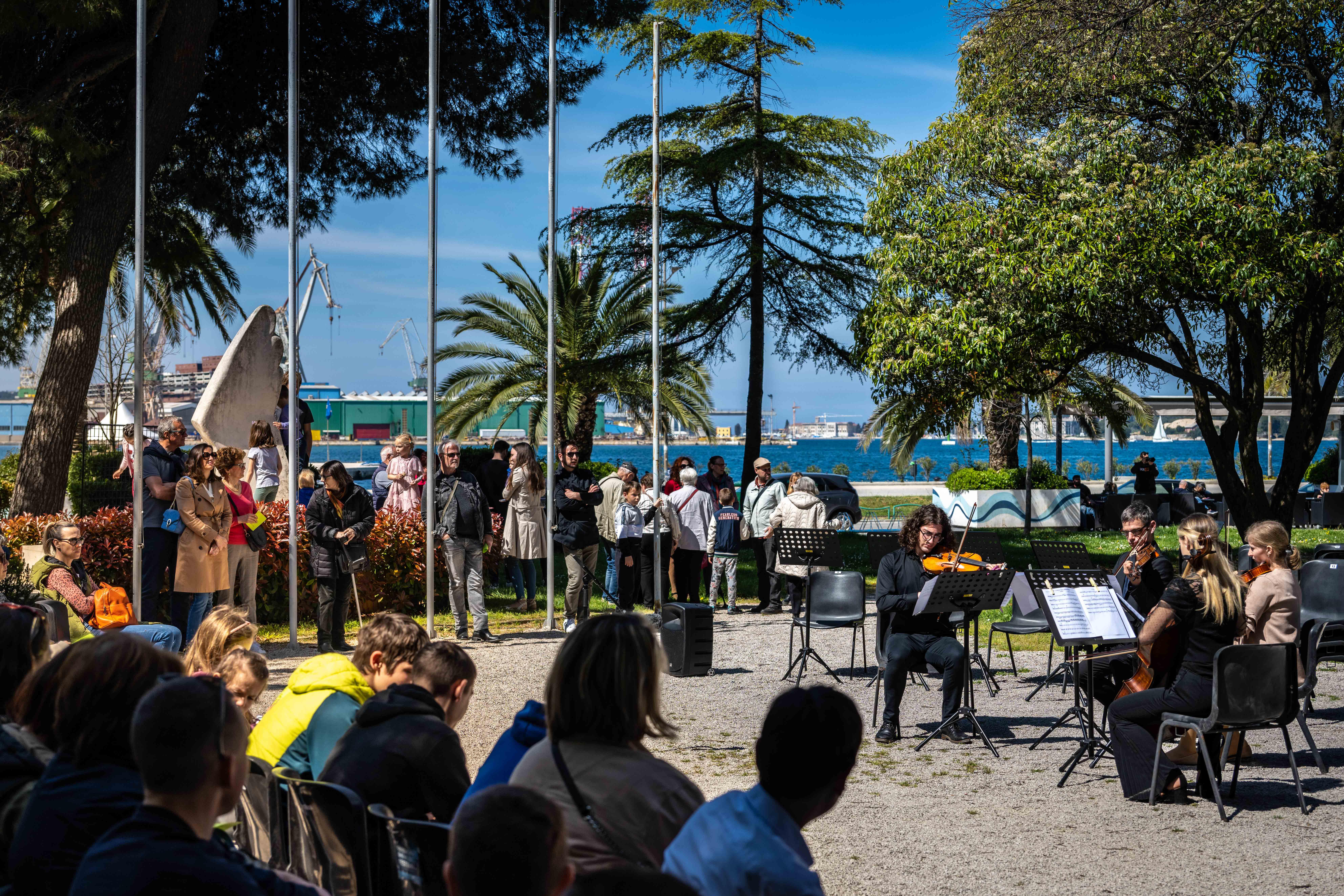 U Mornaričkom parku, 12. travnja pred publiku će stati gudački kvartet 4Tune kojeg čine glazbenici Milan Grbić (violina), Matea Kasaić Drakšić (violina), Liubov Zuraeva (viola) i Fabio Jurić (violončelo). Članovi kvarteta imaju bogato glazbeno iskustvo stečeno kroz obrazovanje, izvođačku djelatnost i pedagoški rad u Hrvatskoj i inozemstvu. Tijekom svojih karijera nastupali su na brojnim koncertima i natjecanjima diljem Europe, surađujući s različitim orkestrima i ansamblima. Navečer će u Mornaričkom parku nastupiti ST. THOMAS QUARTET feat. IVONA FABRIS. Članovi kvarteta jesu Boro Lukić - gitara, Leon Brenko - klavijature, Boro Lukić - gitara, Srđan Kuzmanović - kontrabas, Marco Quaranttoto - bubnjevi te Ivona Fabris – vokal. Bend izvodi neke od najljepših jazz standarda koje su proslavili veliki izvođači poput Frank Sinatre, Elle Fizgerald, Tony Bennetta i drugih.