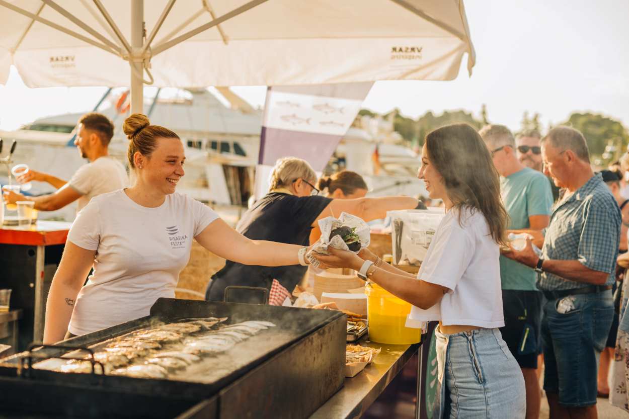 Gastronomska ponuda organizirana je kroz šest kulinarskih zona tematski podijeljenih na bijelu ribu, plavu ribu, školjke, fritto misto te lignje, sipe i hobotnice. Posjetitelji mogu kušati polpete od plave ribe, punjene srdele, pljukance s kaneštrelama, tuna burger, lignje na ražnju, pečene kraci hobotnice i brodet. Tradicijski brodet, koji na svakoj fešti priprema drugi štand prema vlastitom receptu, ovaj put će od plavog raka pripremati Tena Pršurić na gourmet zoni "Fritto misto". Svu hranu pripremaju lokalni ribari i njihove obitelji, što jamči autentičnost okusa.