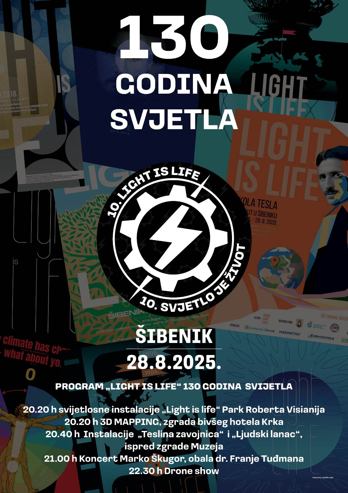 Vidimo se u četvrtak u Šibeniku, gradu koji već 130 godina živi u svjetlosti i koji je upravo zbog tog povijesnog trenutka postao simbol napretka i inovacija. Manifestacija „Light is Life“ počinje u 20:20 sati.
