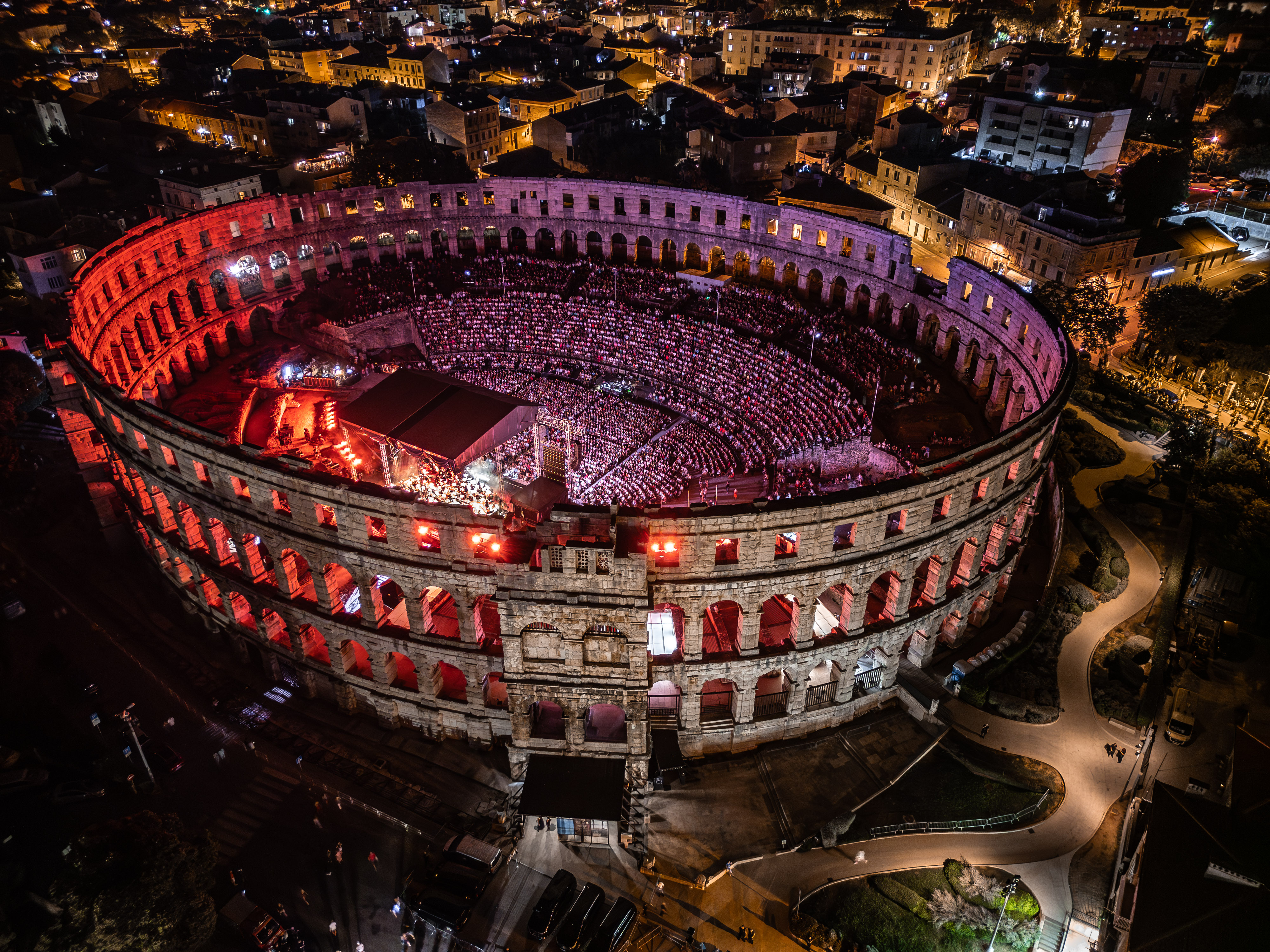 Ovog ljeta Arena u Puli ponovno postaje pozornica najvećih domaćih i svjetskih imena. Doživite vrhunsku produkciju, bezvremensku arhitekturu i glazbu koja se pamti – sve u jednom od najimpresivnijih antičkih amfiteatara na svijetu.