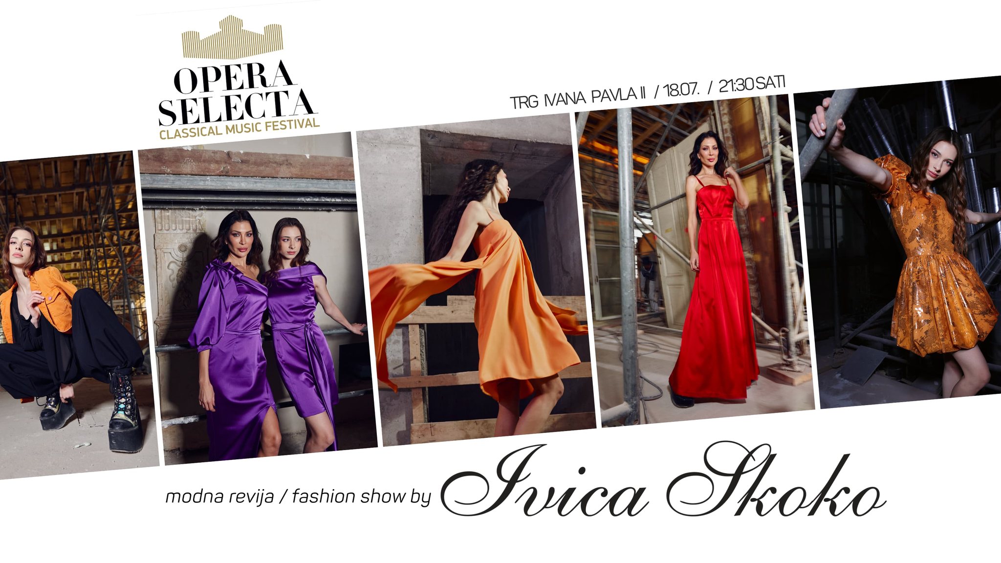 Modna revija poznatog dizajnera Ivice Skoke uz pratnju klasične glazbe Ozrena K. Glasera i baletnu točku solista HNK Zagreb u sklopu programa festivala Opera Selecta.