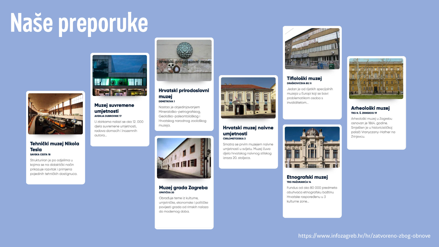Prepoznajući kreativnost, entuzijazam i turistički potencijal koji stoji iza svih ovih privatnih inicijativa, TZGZ je odlučila kreirati „Museums, maybe“ kako bi im omogućila platformu za još bolje povezivanje s publikom. Ovom inicijativom ne samo da pružamo podršku tim jedinstvenim projektima, već im dajemo veću vidljivost i na europskoj i svjetskoj razini. Pozivam sve da posjete ove zagrebačke atrakcije tijekom vikenda, jer to je idealna prilika za otkrivanje nesvakidašnjih gradskih destinacija koje su postali svojevrsni zaštitni znak Zagreba. Posebna prednost većine ovih lokacija je što su otvorene svakog dana u tjednu, pa ako ovog vikenda ne stignete, uvijek imate priliku zakoračiti u njihov zanimljiv svijet. “