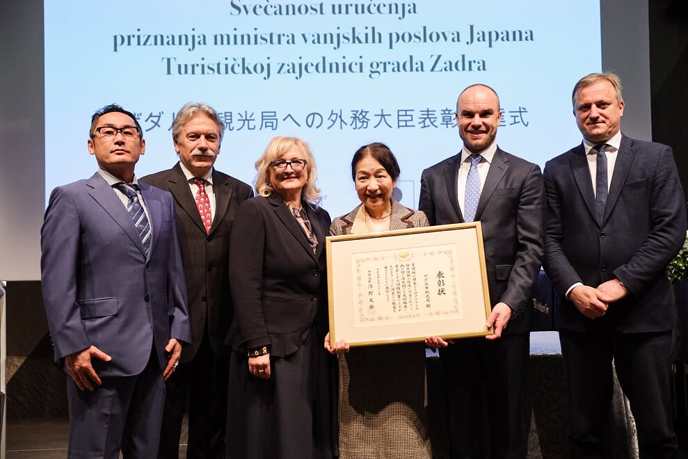 Turistička zajednica grada Zadra dobila je visoko priznanje ministra vanjskih poslova Japana za doprinos zbližavanju Hrvatske i Japana kroz projekt "Tuna, Sushi & Wine Festival" koji se od 2015. godine održava u Zadru. Visoko priznanje japanske Vlade u utorak je na svečanosti u Kneževoj palači direktoru Turističke zajednice grada Zadra Mariju Paleki uručila veleposlanica Japana u Hrvatskoj Njezina Ekselencija Misako Kaji.