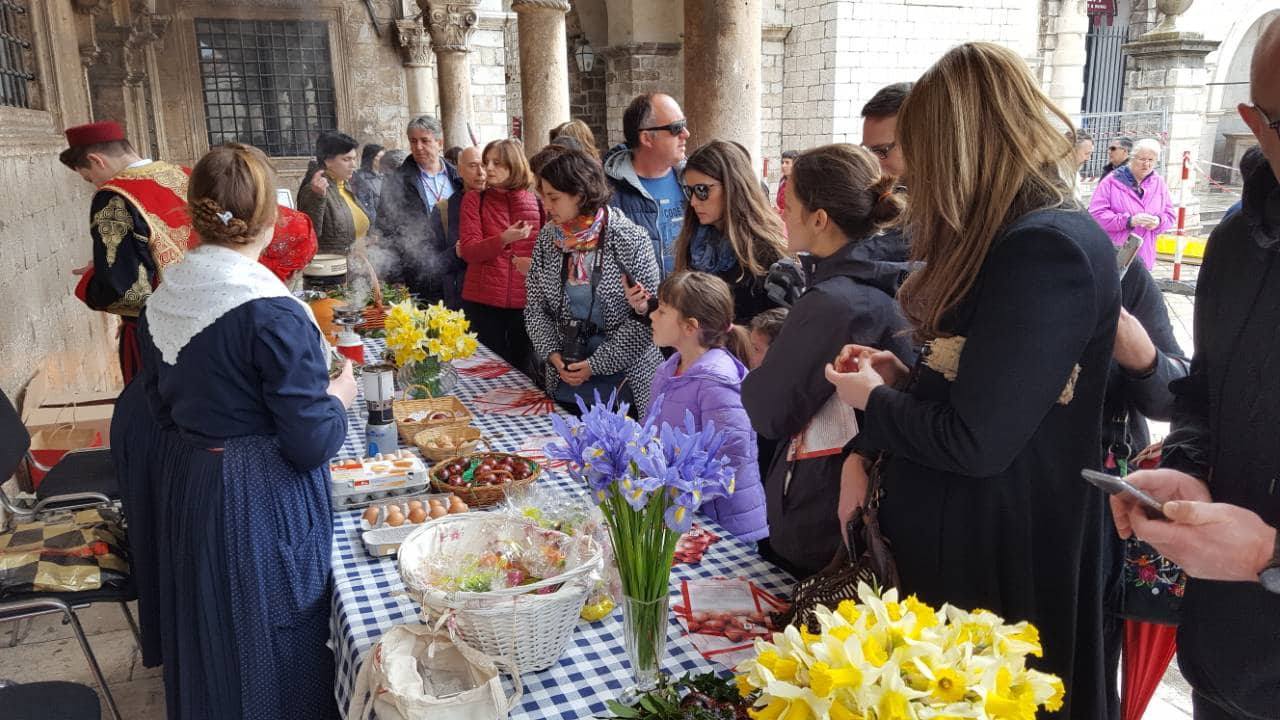 Unatoč lošem vremenu, za sve Dubrovčane i posjetitelje grada, Turistička zajednica grada Dubrovnika održala je bogat program danas na Stradunu. Uz folklorni nastup KUD „Sveti Juraj“ Osojnik te nastup Klape Ragusa, posjetitelji su imali priliku prisustvovati radionici tradicionalnog penganja jaja udruge „Dubrovački primorski svatovi“. Osim zabavnog programa, djevojke u narodnim nošnjama dijelile su pengana jaja te prigodne letke o tradicionalnim običajima za vrijeme Uskrsa.