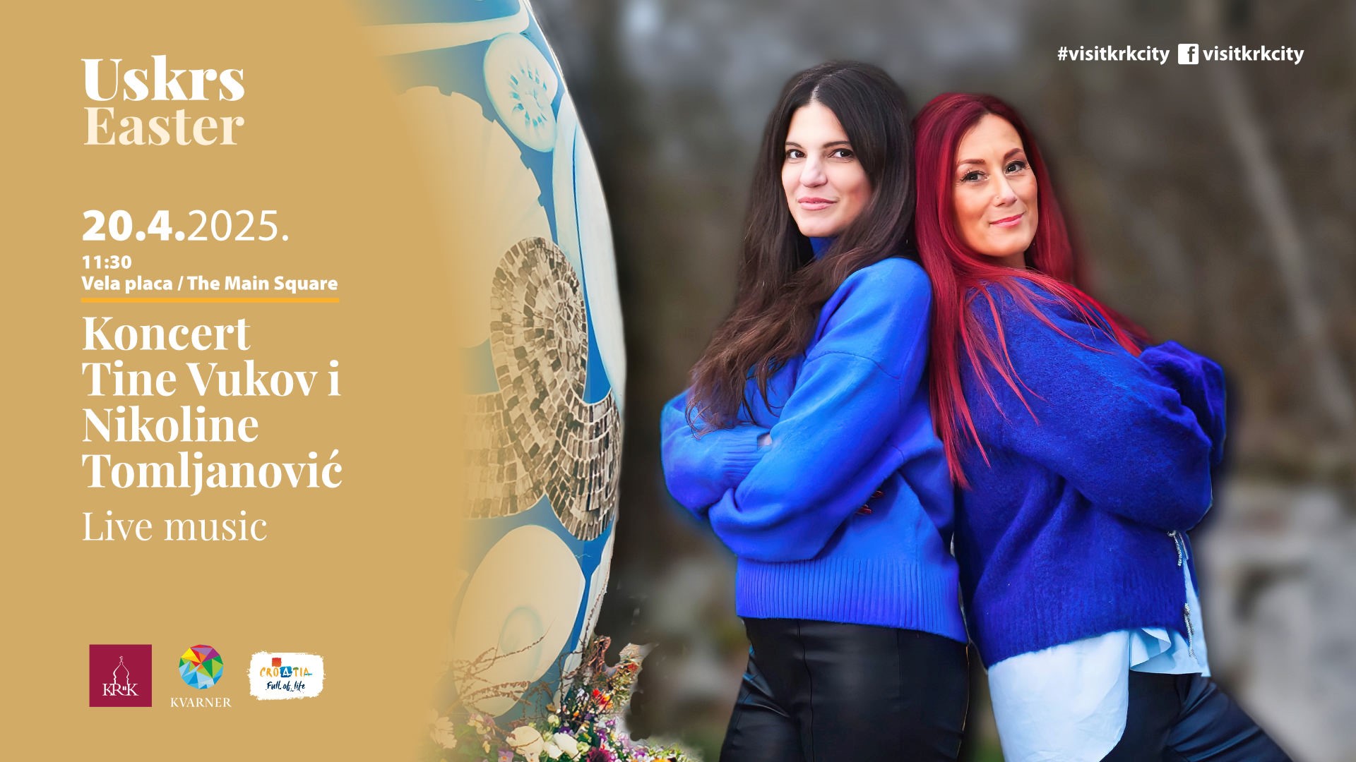 Uskrsno nedjeljno jutro započinje na Veloj placi, gdje vas od 11:30 očekuje podjela tradicionalne otočne pince – mirisne slastice koja je nezaobilazan dio blagdanskog stola. Blagdansku atmosferu upotpunit će koncert dviju izuzetnih vokalistica – Tine Vukov i Nikoline Tomljanović.