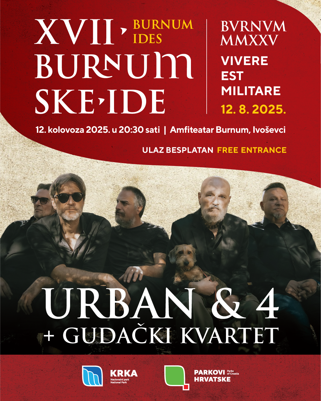 U jedinstvenoj atmosferi burnumskog amfiteatra nastupit će jedno od najvećih imena hrvatske glazbene scene: Damir Urban, sa svojim bendom Urban & 4, uz pratnju gudačkog kvarteta. Uz glazbeno-scenski spektakl, u sklopu Burnumskih ida redovito se održava i sajam, iznimno popularni dio manifestacije. Posjetiteljima će tako biti prezentirana umijeća rimskih obrtnika, a upoznat će i svakodnevni život kako običnih ljudi tako i pripadnika legijskih postrojbi.