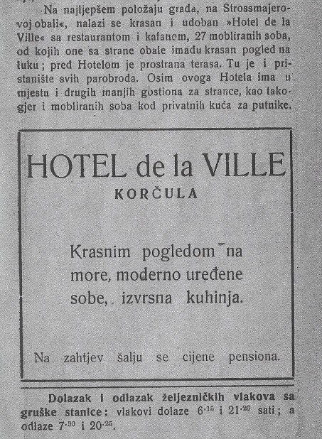 Posljednja stranica teksta je namijenjena opisu i promociji „Hotela de la Ville“, uz napomenu za Dolazak i odlazak željezničkih vlakova sa gruške stanice: vlakovi dolaze 6:15 i 21:20; a odlaze 7:30 i 20:25.