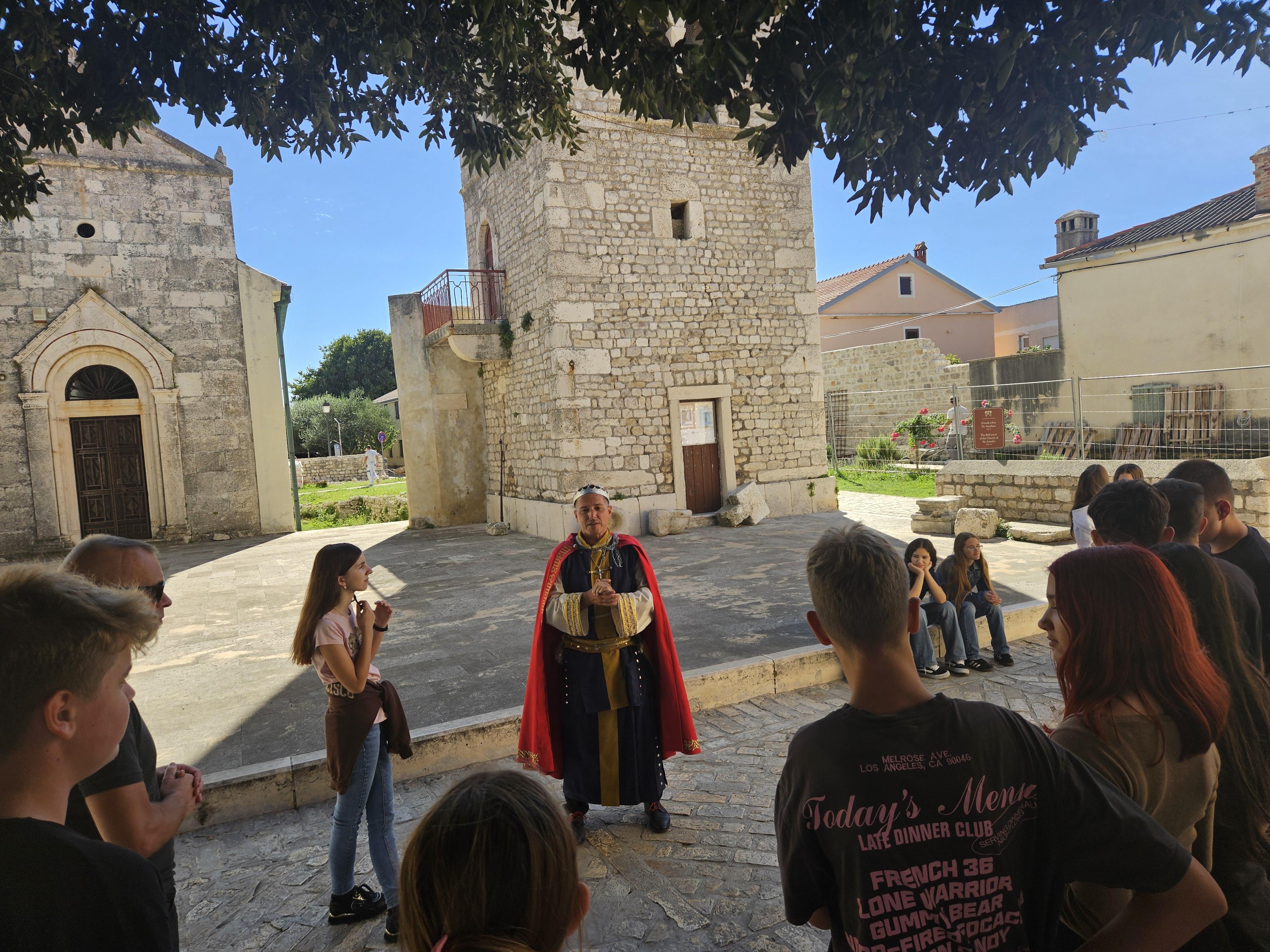 Ovom prigodom učenike i okupljene turiste te građanstvo vodio je kralj Tomislav (vodič). Ovaj storytelling projekt čin povezan je s obilježavanjem iznimno važnog događaja za cijelu Hrvatsku 1100. obljetnicu Hrvatskog kraljevstva. Za tu prigodu, a osim prigodnih promotivnih materijala, ninska turistička zajednica nabavila je kostim kralja i kraljice za prigodno kostimirano vođenje, te pratećih turističkih događaja poput kraljevske šetnje unutar Romantičnog tjedna. Za narednu godinu planirano je naizmjenično kostimirano vođenje u liku pjesnika Zoranića i vila te u liku kralja Tomislava i kraljice.