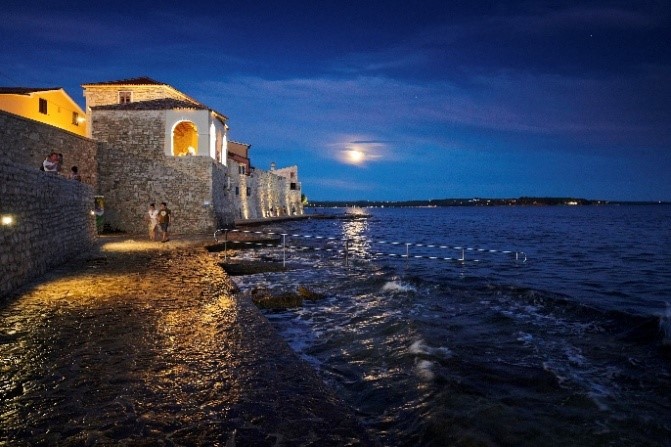 Prošećite se duž povijesnih zidina koje šapuću priče iz davnina. Otkrijte romantičnu povijesnu ložu, idilično mjesto koje odzvanja odjecima kulture i povijesti. Slijedeći popularne šarene kišobrane u vibrantnim šarenim ulicama, doći ćete do obnovljenog gradskog trga koji vas svojom profinjenošću poziva da zaustavite vrijeme u tamošnjim kafićima, gdje vas dočekuju ljubazni domaćini s odličnom ponudom lokalnih proizvoda, poput vina ili craft pive, s preporukama za savršeni provod u gradu. Ondje vas samo par koraka dijeli od velikog gradskog parka i pogleda na more, s jednim od najljepših zalazaka sunca na Jadranu.