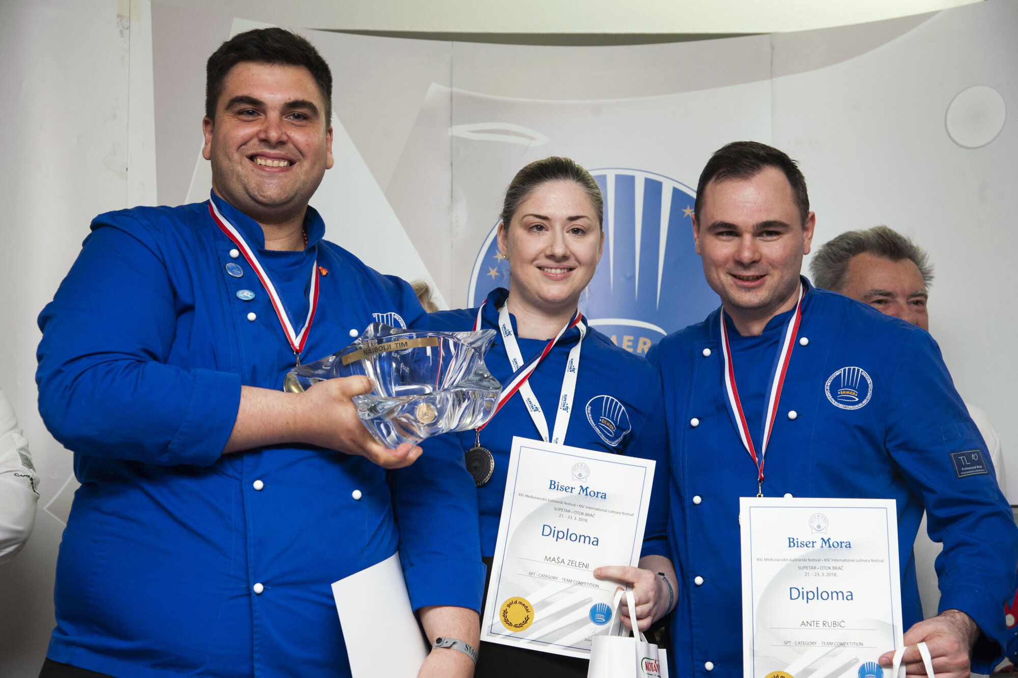 Završni dan Bisera mora, najvećeg kulinarskog festivala u Hrvatskoj u organizaciji Šefova kuhinja europskih i mediteranskih regija, nastavio se natjecanjima kuhara seniora u nizu kategorija. Večer prije (četvrtak) podijeljene su nagrade za timsko natjecanja, a prvi je bio tim "Kap uja"; dalmatinska ekipa Trogiranina Ante Rubić (Era, Trogir) zaduženog za glavno jelo, Splićanke Maše Zeleni (Bokeria, Split) koja je napravila desert te imotskog chef Mate Đuzel (Mediteraneo, Split) zaduženog za predjelo. Drugoplasirani su bili Team FVG (Davide Patat, Michele Bertoli, Bernardino Aversa) iz Italije, a treće mjesto pripalo je Makedoncima (Zoran Andonov, Zoran Majanovsk i Boban Simonovski).