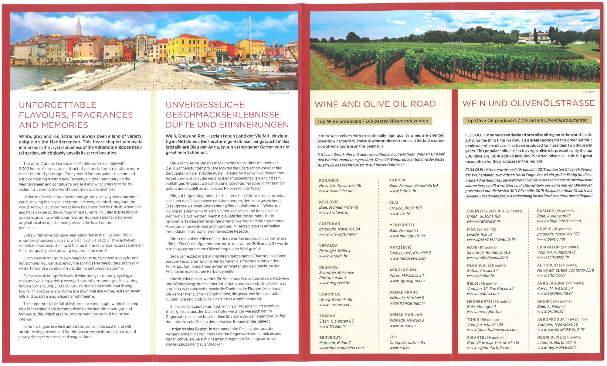 Što se Cesta maslinovog ulja tiče, Michelin posebno naglašava vodič Flos Olei i činjenicu da je Istra proglašena najboljom svjetskom regijom ekstradjevičanskog maslinovog ulja te posebno izdvaja sljedeće proizvođače: