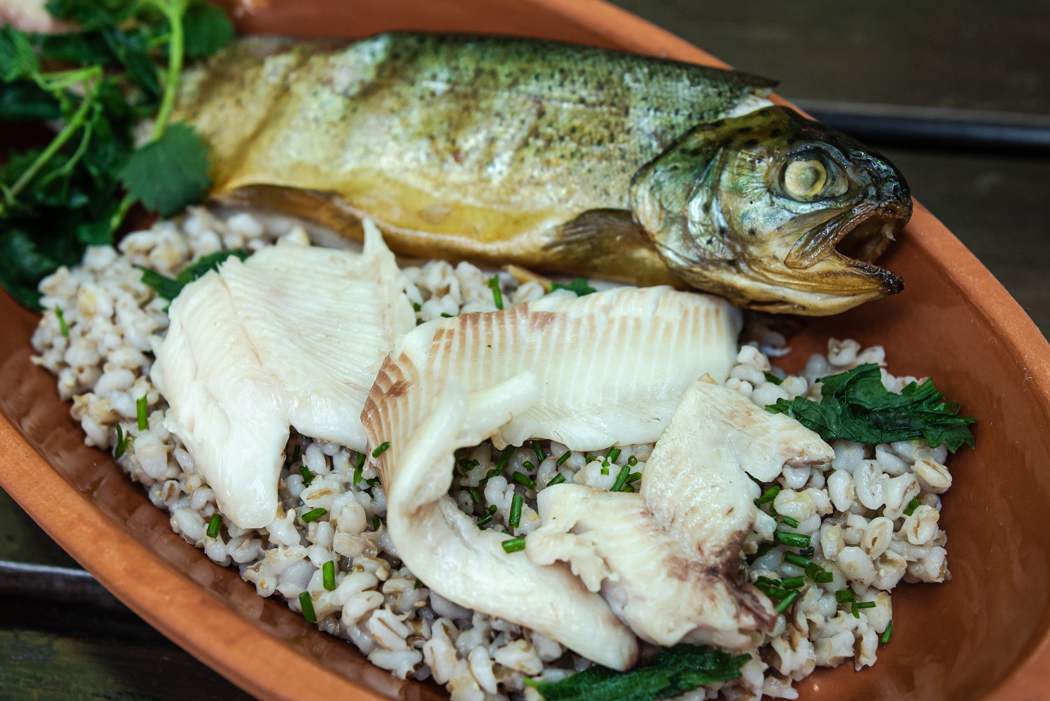 Hrana je kuhana u metalnim kotlovima, pečena na zagrijavanom kamenu, pečena pod pekom te dimljena.