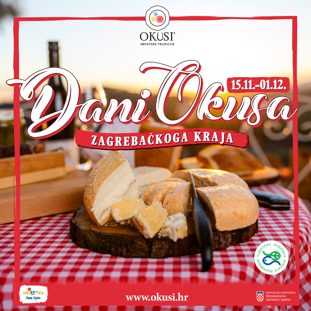Manifestacija ‘Dani Okusa hrvatske tradicije’ ove se godine, od 15. studenog do 1. prosinca, održava po peti put, a kao dio ovog nacionalnog gastronomskog projekta već tradicionalno se predstavljaju i Dani Okusa zagrebačkoga kraja. Posjetitelji će tako imati priliku istražiti raznovrsne specijalitete domaće kuhinje, pripremljene od autentičnih lokalnih namirnica, koji oslikavaju bogatu kulinarsku baštinu Zagrebačke županije.