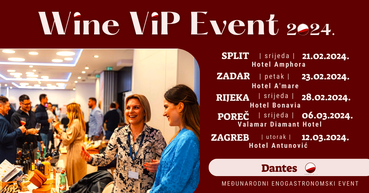 Dantes sa svojim timom agencije odlučio se na ovaj za njih vrlo poseban dan i 19-ti rođendan agencije podijeliti sa javnošću informaciju o dogovorenim terminima 5 Wine ViP Evenata u 2024.godini. Eventi u 2023.godini bili su do sada najbolje posjećeni, a prema najavama i vrlo velikom interesu partnera i suradnika kao i gostiju očekuje se da će eventi u 2024.godini biti u najmanju ruku fantastični.