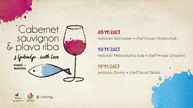 25.10.2023. Novi eno-gastronomski doživljaj u Poreču „Cabernet Sauvignon & plava riba, s ljubavlju“ Tri petka za tri putovanja u otkrivanje sljubljivanja vina i plave ribe uz vrhunske chefove u porečkim restoranima
