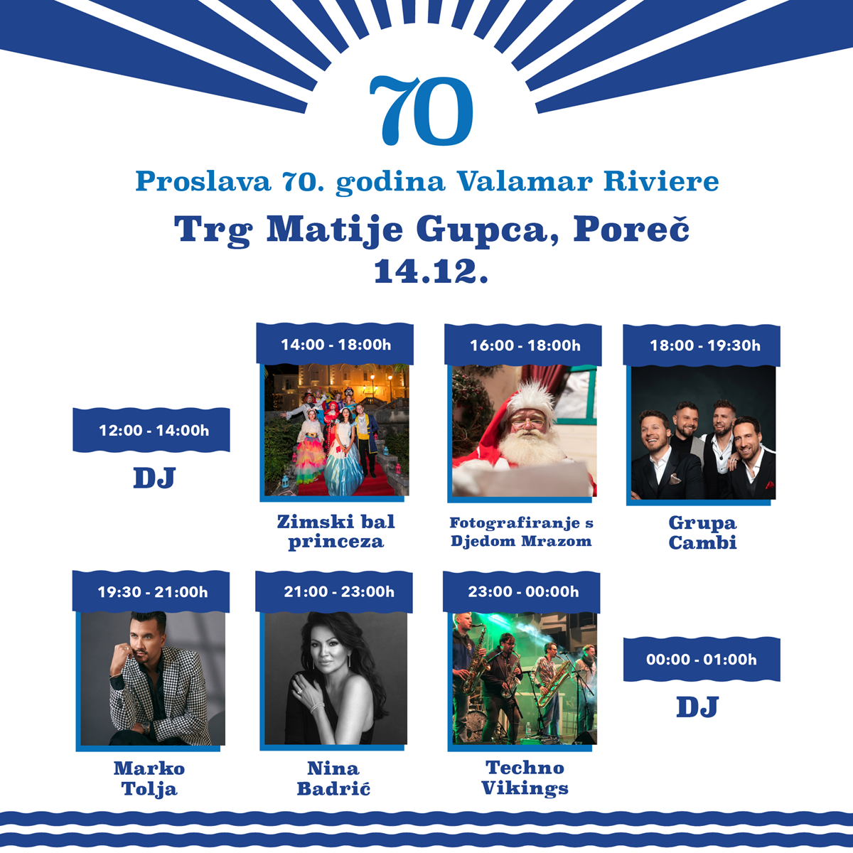 U povodu obilježavanja 70 godina postojanja, kompanija Valamar Riviera će u Poreču prirediti rođendansku proslavu u kojoj će uživati sve generacije, vraća se popularni “Bal princeza”, nastupaju grupa Cambi, Marko Tolja, Nina Badrić i glazbena skupina Techno Vikings