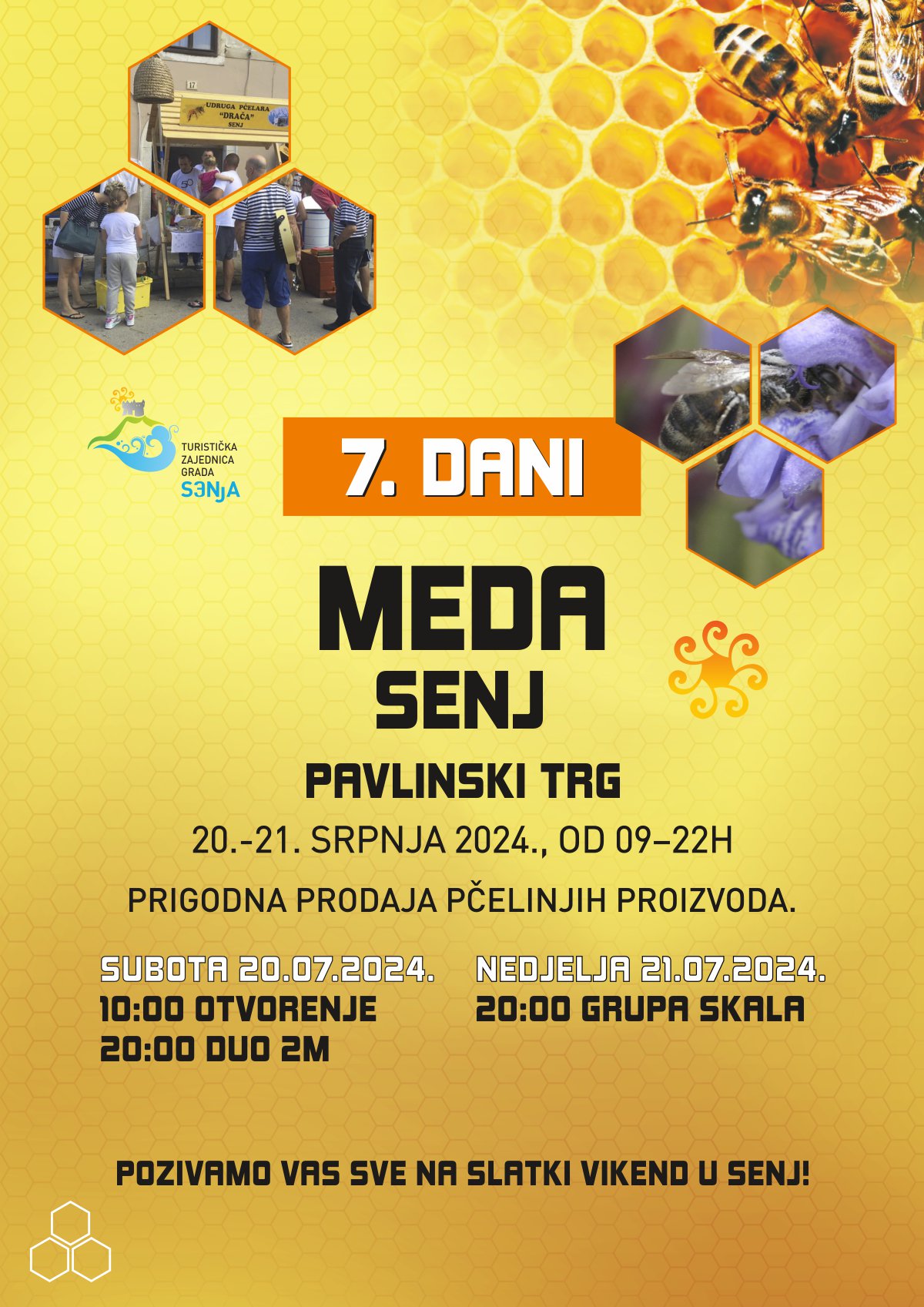 Udruga pčelara Drača i Turistička zajednica Grada Senja pozivaju Vas u subotu i nedjelju 20. i 21. srpnja 2024. na 7. Dane meda.