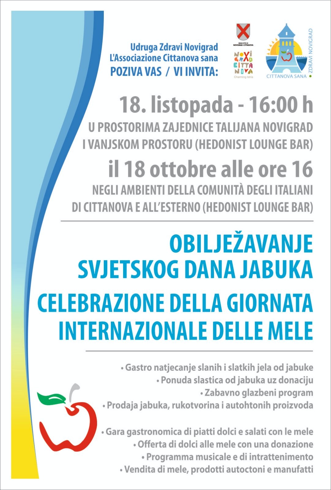Samo nekoliko koraka dalje, u dvorištu Zajednice Talijana, u subotu od 16 sati održava se Dan jabuka – tradicionalno i veselo okupljanje u organizaciji udruge Zdravi Novigrad, povodom obilježavanja Svjetskog dana jabuka.