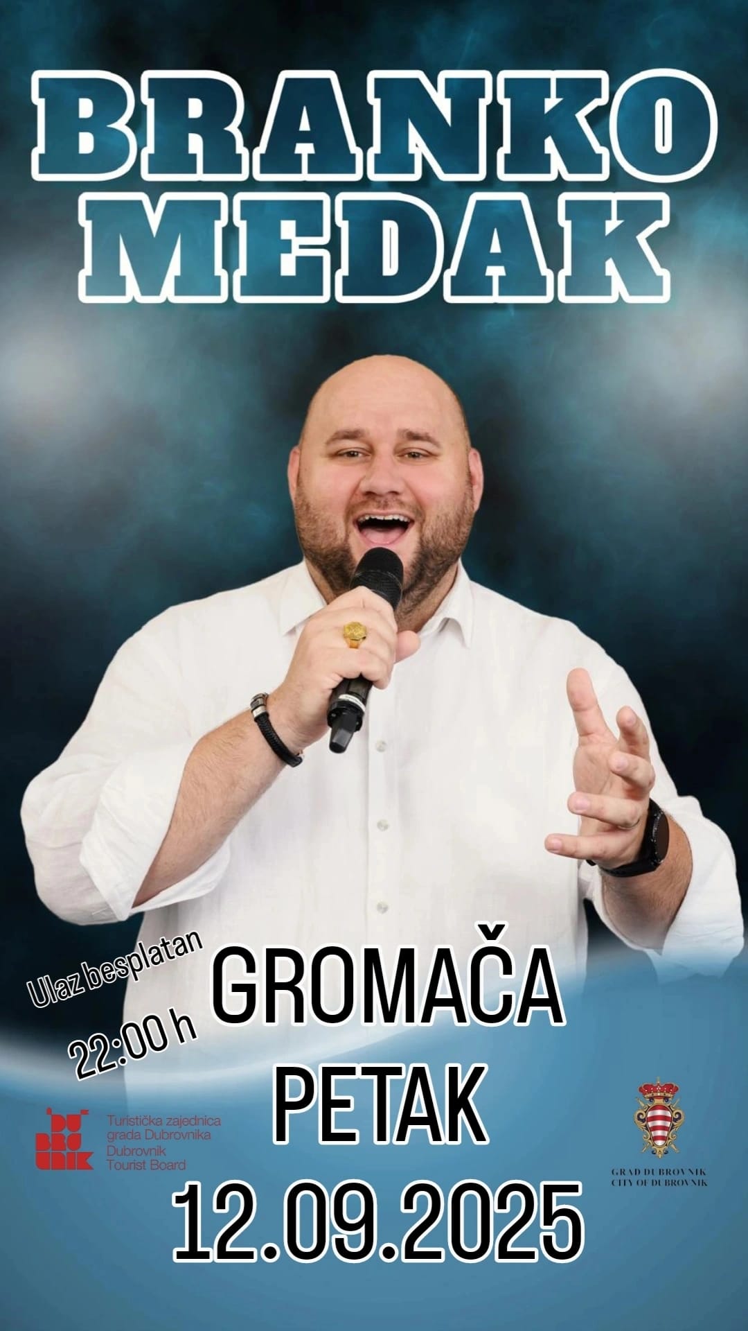 Program se nastavlja u petak, 12. rujna, kada će na Gromači, s početkom u 22 sata, okupljene zabavljati Branko Medak.